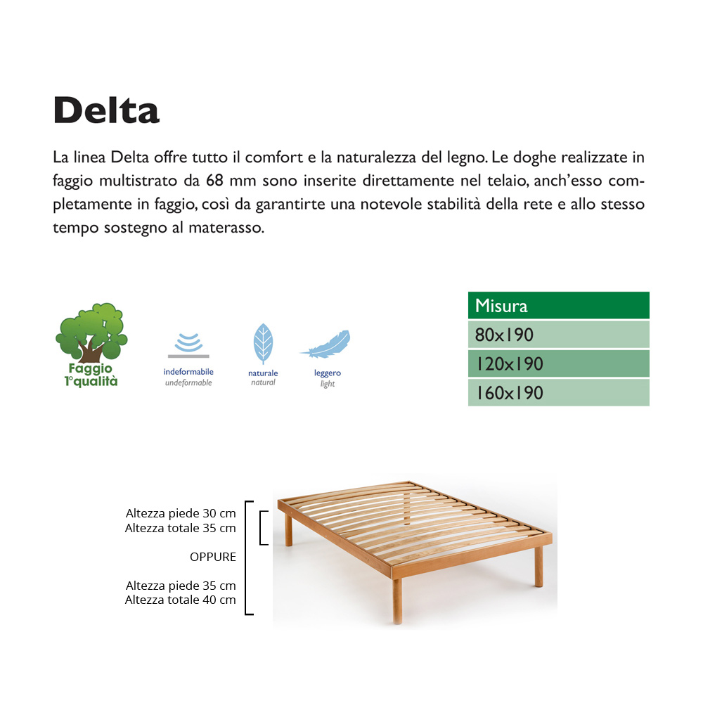 Linja Bio delta ofron të gjithë komoditetin dhe natyralitetin e drurit . Rripat e bëra nga ahu me shumë shtresa 68 mm futen direkt në kornizë, e cila gjithashtu është tërësisht prej ahu, në mënyrë që të garantojë qëndrueshmëri të konsiderueshme të bazës dhe në të njëjtën kohë të mbështesë dyshekun.