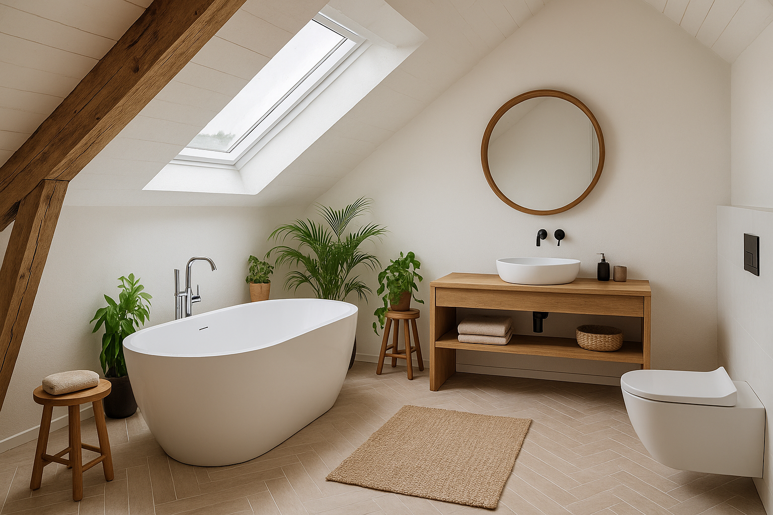 Në një papafingo, drita është gjithçka . Nëse keni një çati xhami, shfrytëzojeni sa më shumë. Por prekja e vërtetë e stilit? Një sistem ndriçimi me shtresa. Mendoni për llambat murale me korniza bronzi të krehura , të punuara me dorë në Itali, që krijojnë reflektime të ngrohta dhe mikpritëse. Po, edhe në banjë.