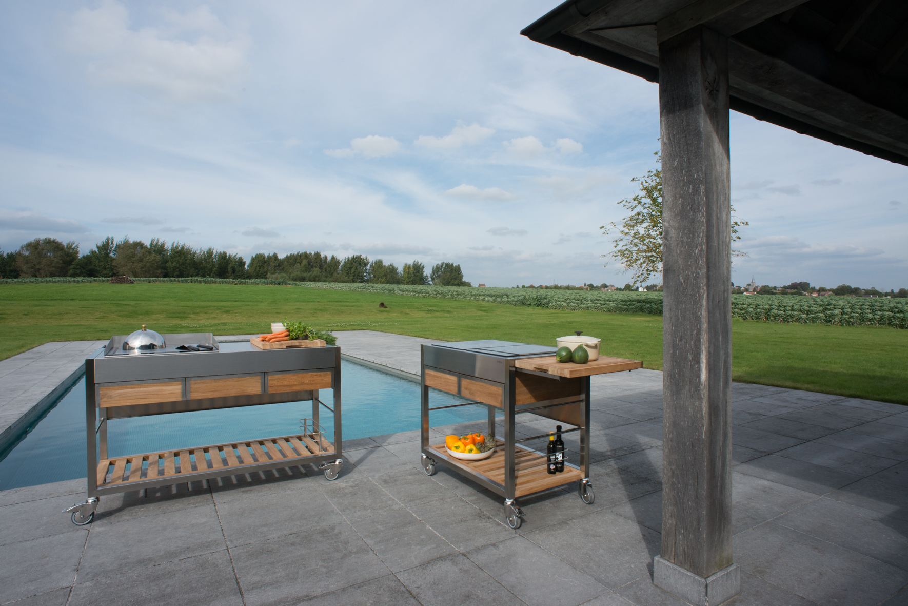 Për një ide origjinale dhe funksionale për ata që duan të gatuajnë dhe të qëndrojnë jashtë janë kuzhinat e kopshtit të koleksionit Viadurini in the Garden. Kuzhinat funksionale të jashtme të transportueshme lehtësisht falë rrotave, ato janë bërë prej druri dru tik dhe çelik inox.
