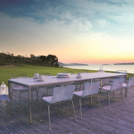 Dhe për një mëngjes të paharruar dhe magjik, drekë apo darkë në kopsht ne ju ofrojmë një përzgjedhje të gjerë të tavolinave me xhami ose qeramikë të lartë, drejtkëndëshe, të rrumbullakëta ose ovale për t’u kombinuar me karriget e koordinuara me hartimin e tryezës tuaj të preferuar.
