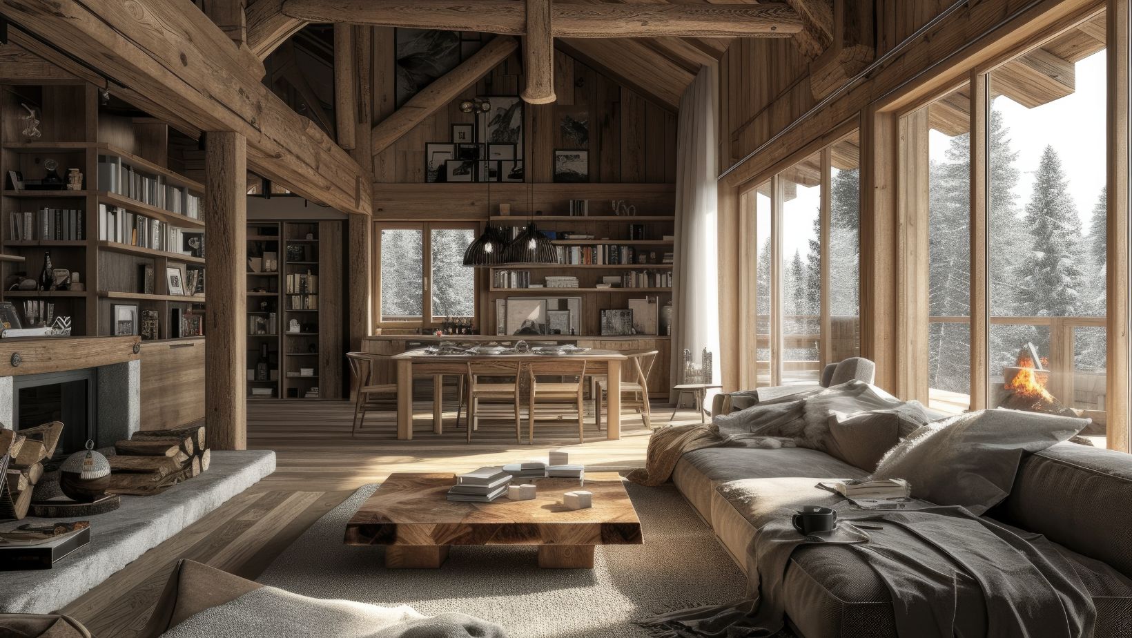 Tavolinë qendrore fshatare : Një tavolinë e madhe qendrore prej druri të ashpër mund të bëhet pjesa qendrore e dhomës, ideale për lojëra në tavolinë ose si vend grumbullimi.