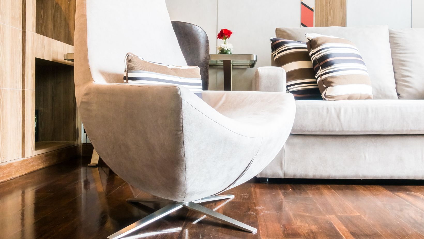 Për të ruajtur interesin vizual, merrni parasysh shtimin e teksteve të kundërta përmes qilimave, perdeve apo edhe veprave të artit. Për shembull, një qilim shag ose një vepër e madhe abstrakte arti mund të shërbejë si pika qendrore pa prishur harmoninë e përgjithshme të dhomës së ndenjes. Në këtë mënyrë, divani dhe kolltuku shërbejnë si elementë bazë solidë dhe të sofistikuar, duke ju lejuar të eksploroni zona të tjera dekorative me më shumë liri.