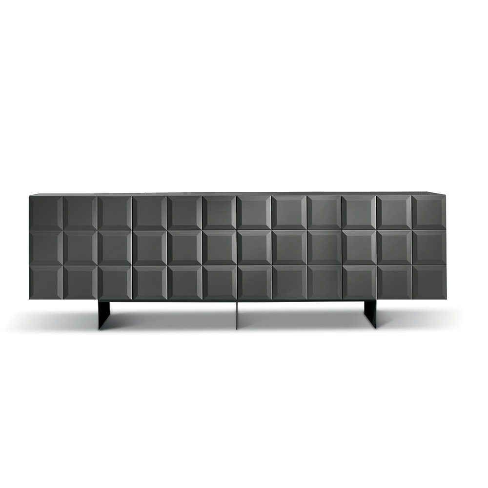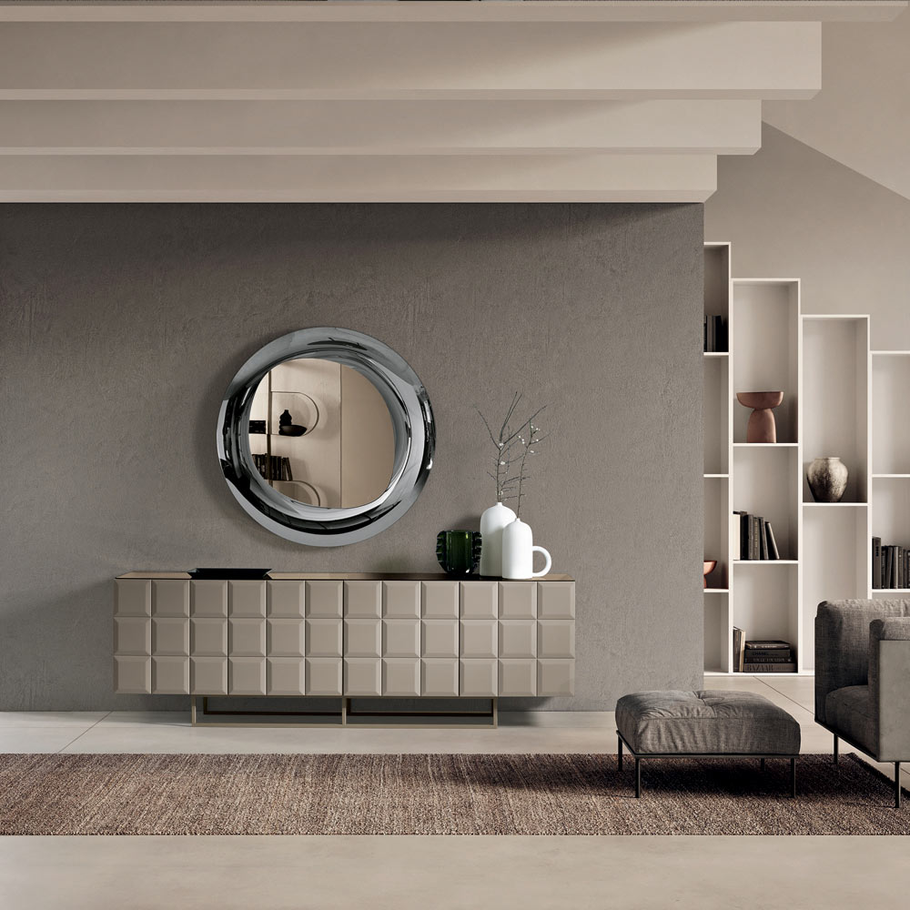 Një bufe elegante, e prodhuar në Itali , ideale për të mobiluar me stil dhomën tuaj të ndenjes ose zonën e ngrënies . Dizajni i saj bashkëkohor dallohet për estetikën e saj të fortë, duke e transformuar njësinë e magazinimit në një element dekorativ të rafinuar.