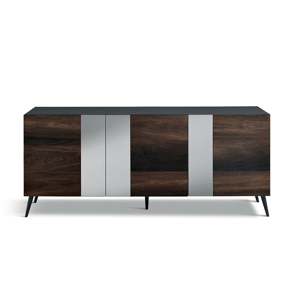 Një bufe elegante, e prodhuar në Itali , ideale për të mobiluar me stil dhomën tuaj të ndenjes ose zonën e ngrënies . Dizajni i saj bashkëkohor dallohet për ekuilibrin e rafinuar të materialeve natyrore dhe sipërfaqeve reflektuese, duke krijuar një aksesor mobilimi me një ndikim estetik mbresëlënës.