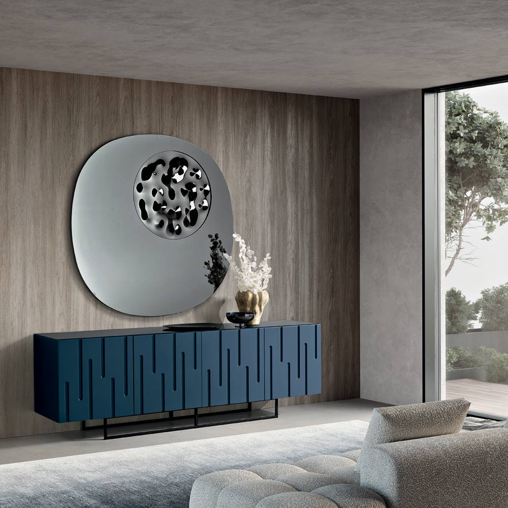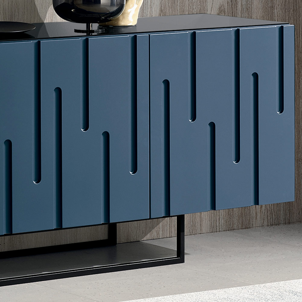 Një bufe elegante, e prodhuar në Itali , ideale për të mobiluar me stil dhomën tuaj të ndenjes ose zonën e ngrënies . Dizajni i saj bashkëkohor dallohet për karakterin e saj të fortë skulpturor, duke e transformuar njësinë e magazinimit në një element dekorativ vizualisht mbresëlënës.