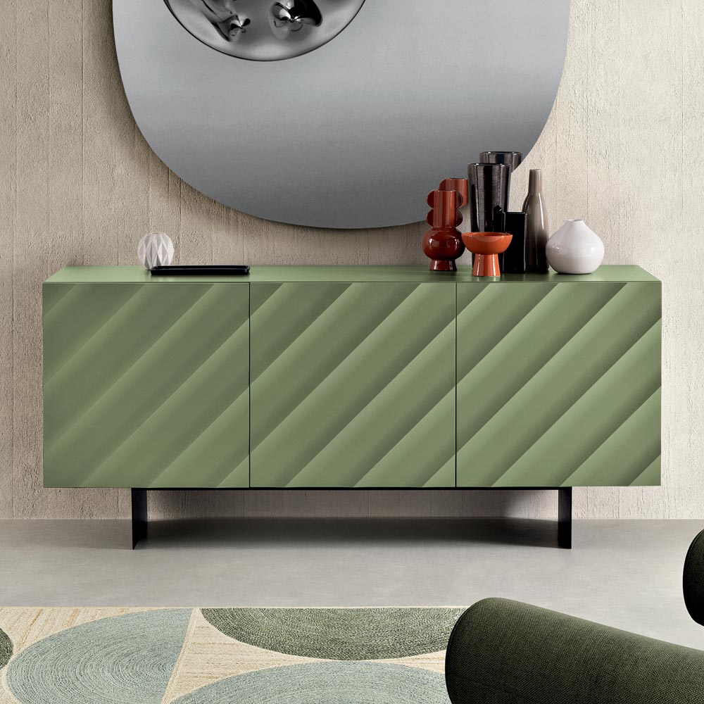 Bufe dizajni e prodhuar në Itali me dyer gjeometrike të stampuara dhe bazë metalike