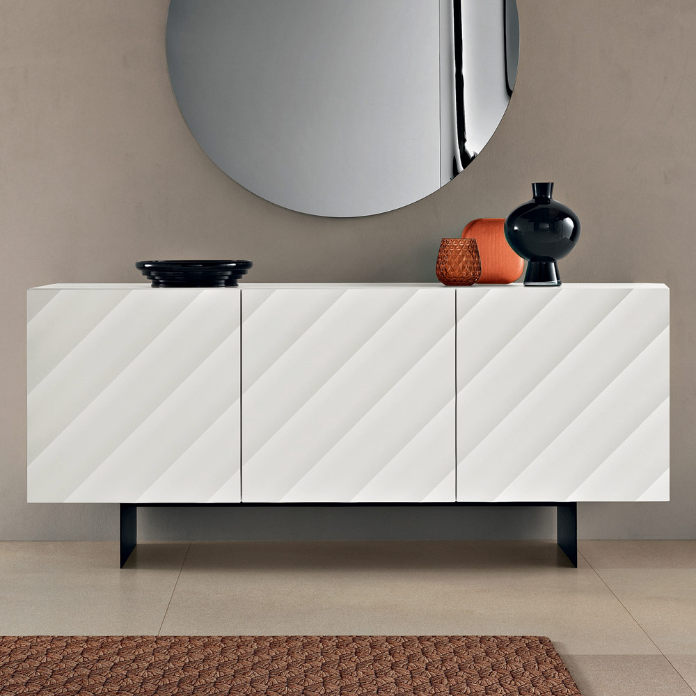Një bufe elegante, e prodhuar në Itali , ideale për të mobiluar me stil dhomën tuaj të ndenjes ose zonën e ngrënies . Dizajni i saj bashkëkohor dallohet për ndikimin e fortë vizual, duke e transformuar njësinë e magazinimit në një element vërtet dekorativ.