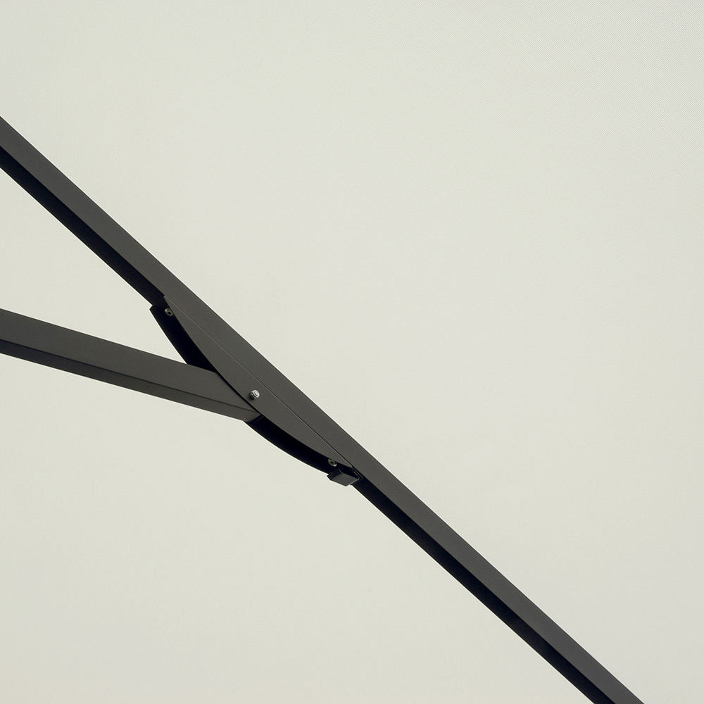 Kjo çadër 3 x 3 metra është zgjidhja ideale për ata që duan të kombinojnë stilin, funksionalitetin dhe rehatinë në hapësirat e tyre të jashtme. Korniza e aluminit me një shufër qendrore me diametër 58 mm dhe tetë brinjë të forta 18 x 28 mm siguron stabilitet dhe qëndrueshmëri, duke ruajtur një estetikë elegante dhe bashkëkohore.