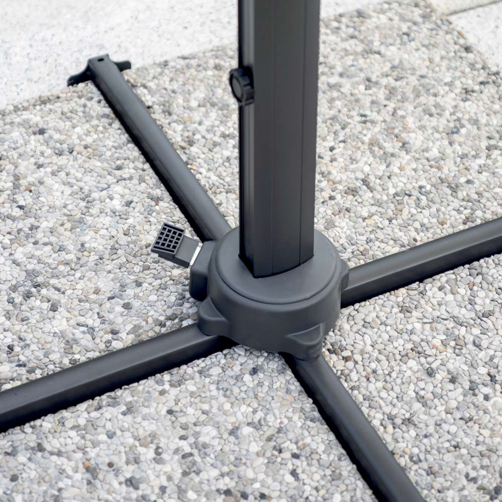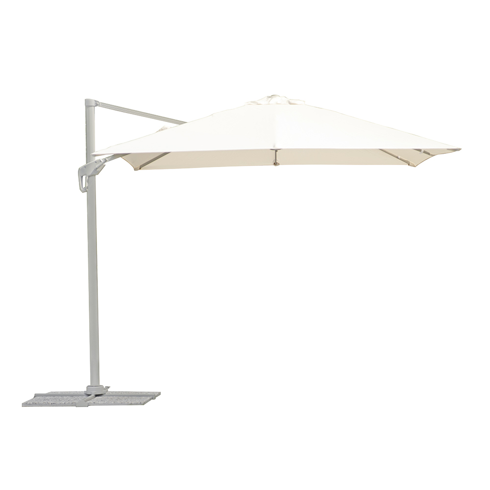 I pajisur me një sistem kundër erës dhe një bazë metalike kryq , ai garanton stabilitet edhe në ditët me më shumë erë. Është perfekt për kopshte, tarraca dhe hapësira pranë pishinave, si dhe për zonat e jashtme në restorante, hotele ose bare.