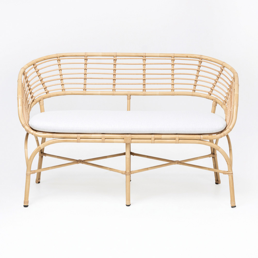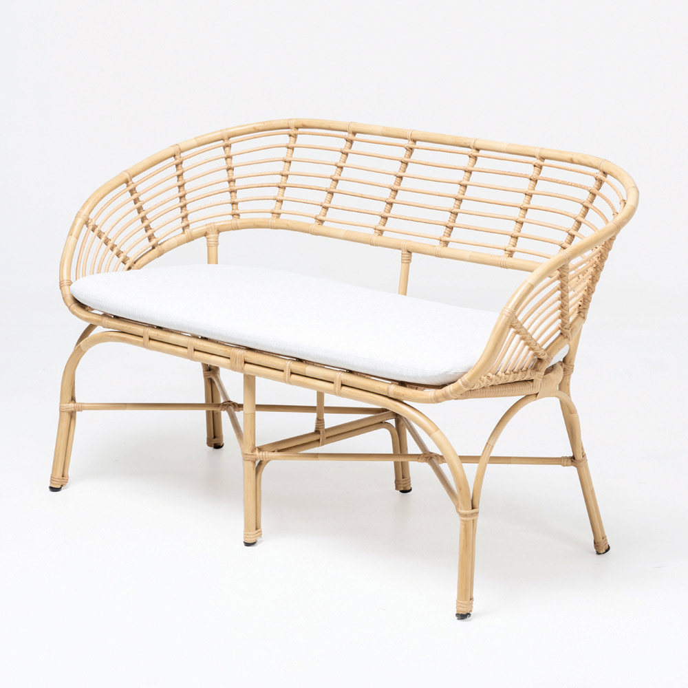 Ky divan kopshti polirattan është një shembull i dizajnit të lehtë dhe elegant që ju fton në momente relaksi të pastër. Struktura e saj, me linjat e saj të lakuara dhe ngjyrën natyrale të polirattanit, ngjall një atmosferë qetësie dhe thjeshtësie, perfekte për të krijuar një cep parajse në kopsht apo tarracë.