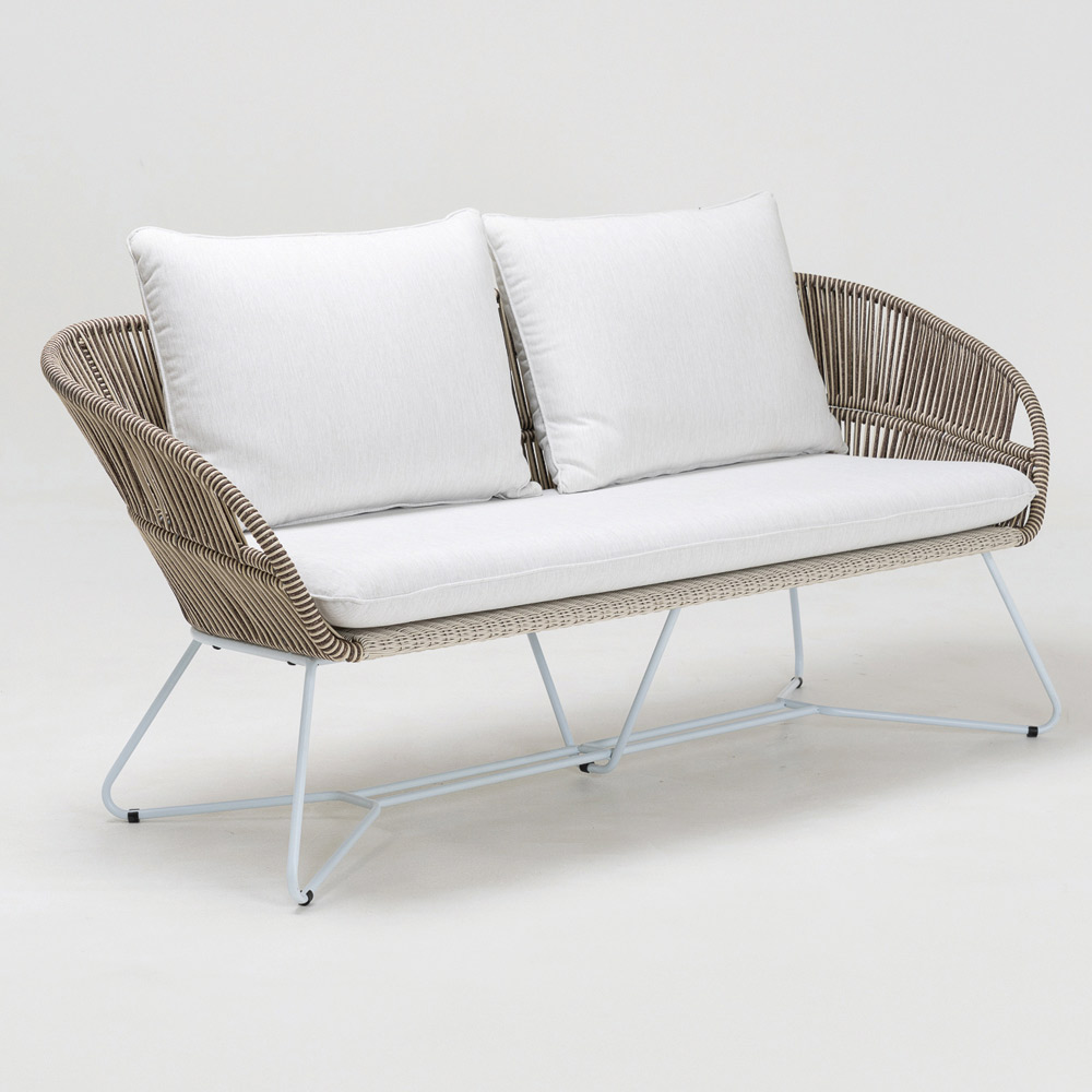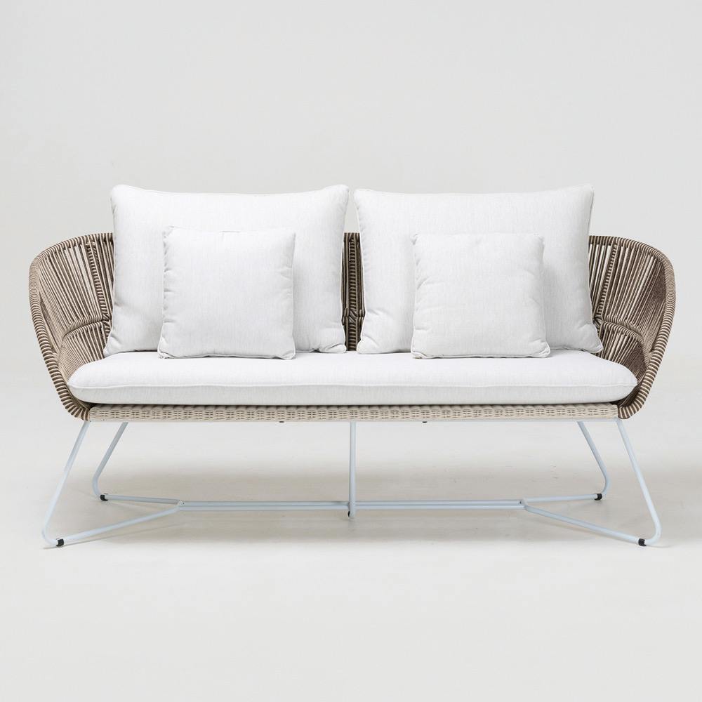 endje Olefin/PP ROPE me një përfundim dyngjyrësh të bardhë perle dhe kapuçino dhe jastëk sediljeje dhe 2 jastëkë mbrapa në