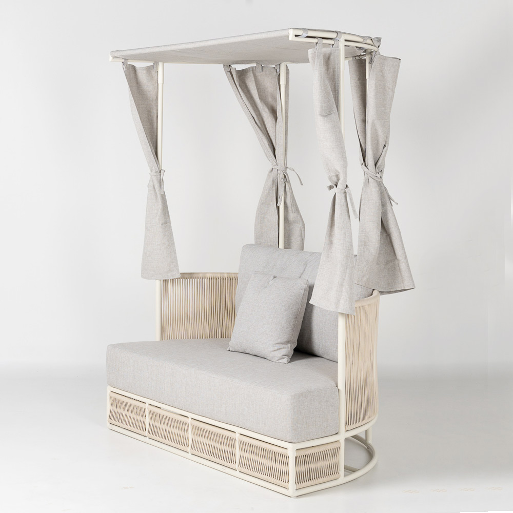I përsosur për tarraca, kopshte, hotele ose hapësira relaksi, ky divan ju fton të shijoni natyrën me stil: një hapësirë e dedikuar për mirëqenien, relaksimin dhe kënaqësinë e të qenit jashtë.