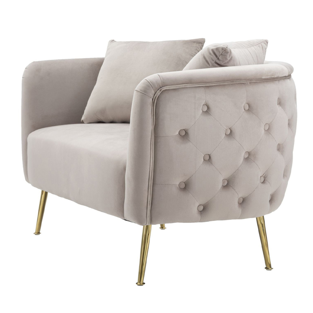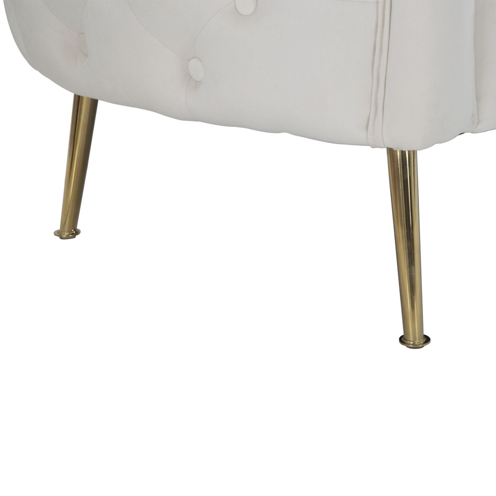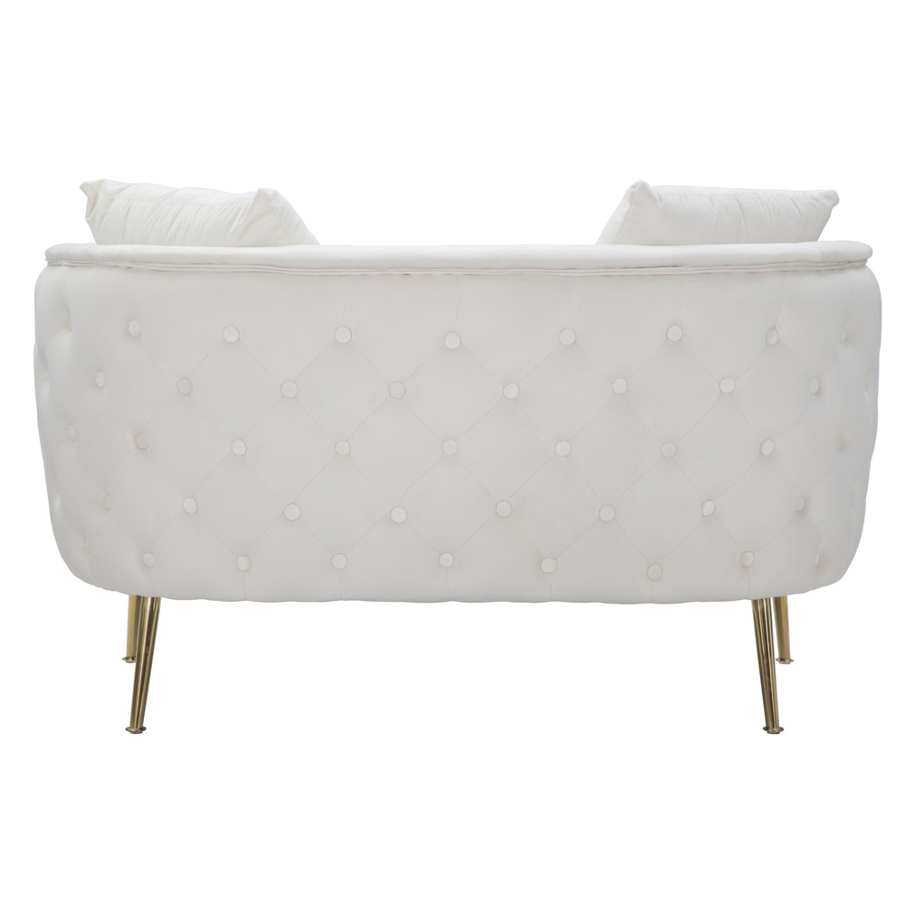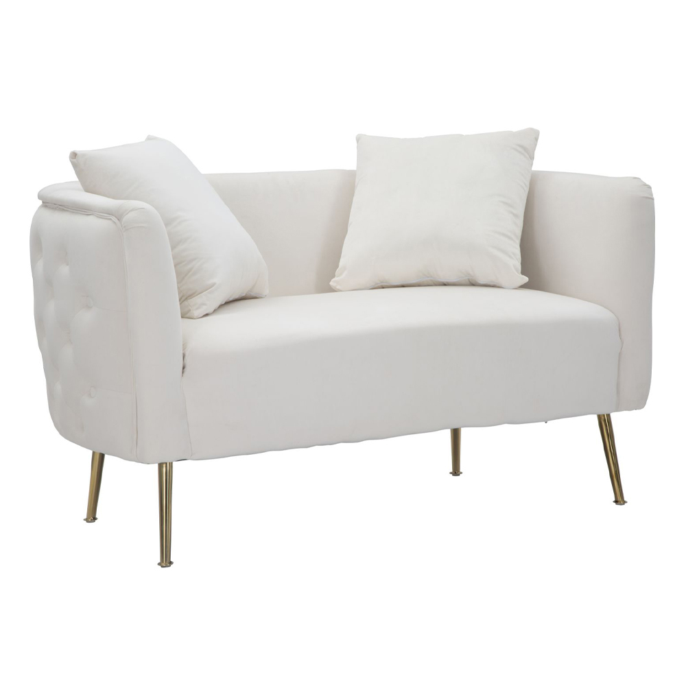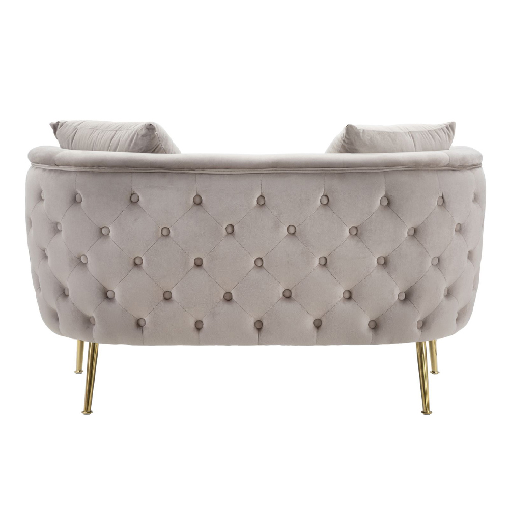 Divan 2 -vendësh me strukturë të brendshme prej druri dhe i mbushur me sfungjer me mbulesë të jashtme kadifeje dhe këmbë hekuri me përfundim të artë. Një mobilje ideale për t'i dhënë karakter zonave të jetesës me një stil modern dhe elegant në të cilin siguron një prekje ekskluzive dhe në të njëjtën kohë një vend të rehatshëm dhe mikpritës dhe për një rezultat optimal. Kontrasti i mrekullueshëm midis kadife dhe hekurit të artë pasuron edhe më shumë modelin përfundimtar të produktit, duke e bërë atë unik dhe magjepsës .