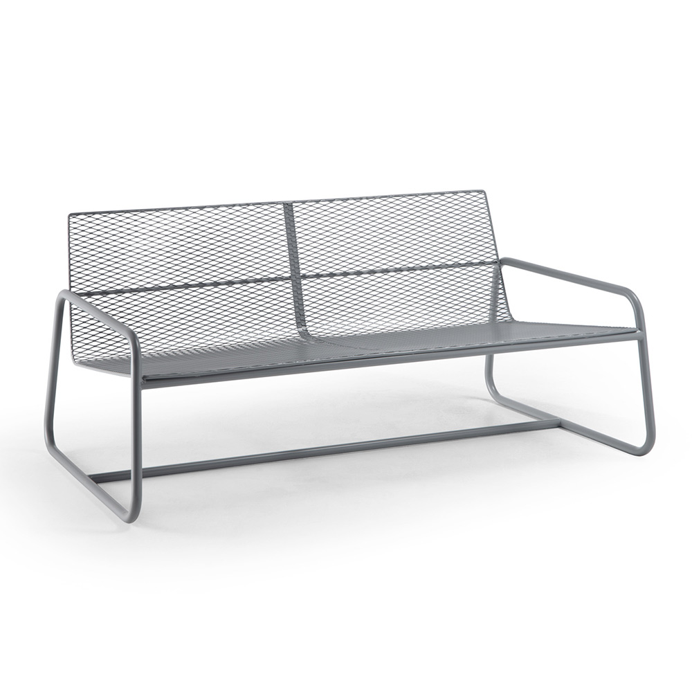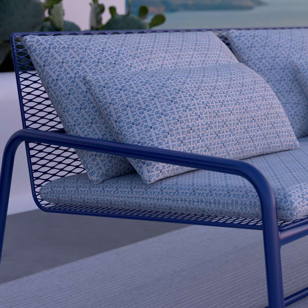 Divan i jashtëm në metal me jastekë pëlhurash të koordinuar të disponueshëm në përfundime të ndryshme, send luksoz i prodhuar në Itali.