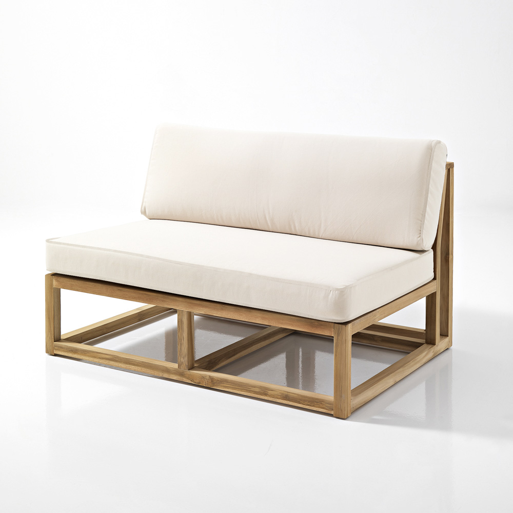 Ky divan kopshti është një shprehje e vërtetë e minimalizmit elegant dhe rehati moderne. Struktura natyrale e tikut shquhet për linjat e pastra dhe qëndrueshmërinë e saj, duke siguruar qëndrueshmëri dhe rezistencë ndaj elementeve. Dizajni linear ofron një prekje bashkëkohore dhe të gjithanshme, të përshtatshme si për hapësirat e jashtme ashtu edhe për ato të brendshme.
