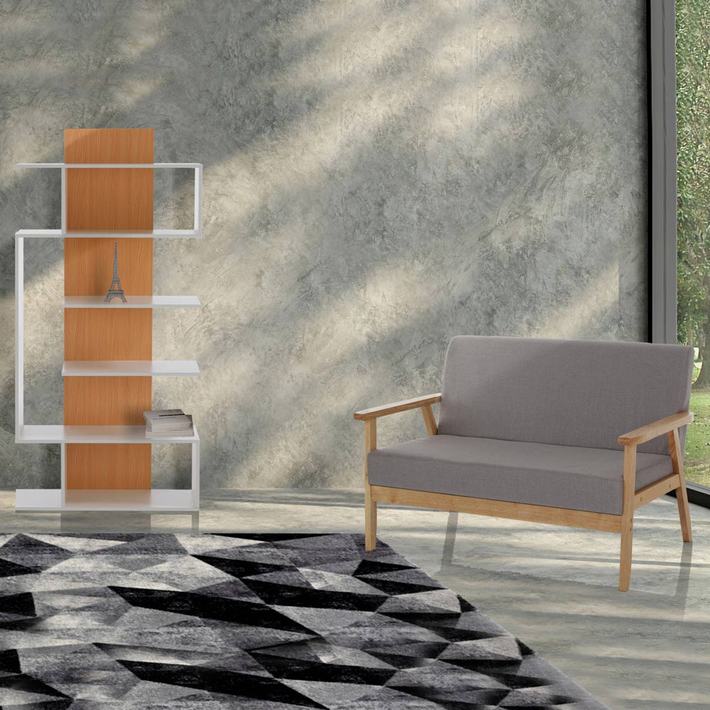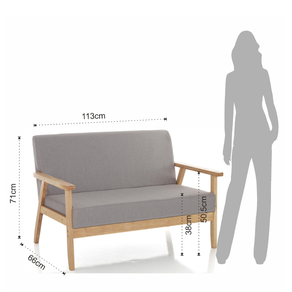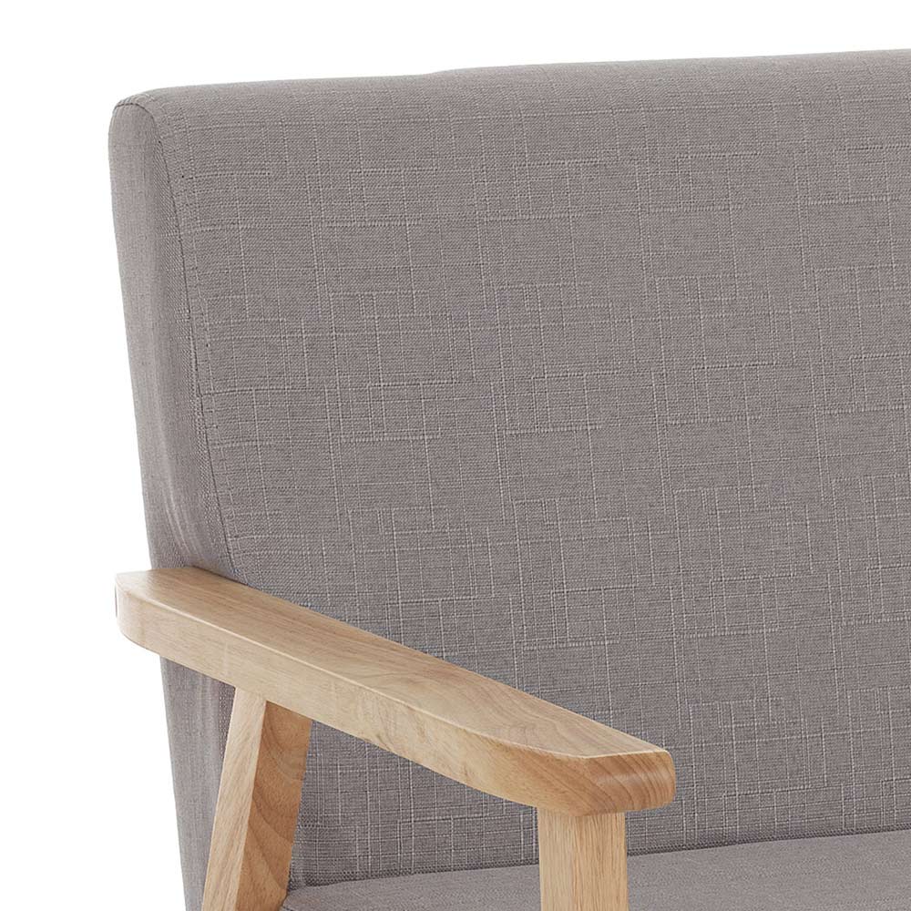 Divan i bërë me sedilje të mbushur dhe mbështetëse të mbuluar me pëlhurë gri jo të lëvizshme, këmbë tërësisht prej druri të fortë pishe. Ky produkt mishëron të gjithë komoditetin dhe funksionalitetin për t'i dhuruar vetes momente qetësie dhe relaksi. Sedilja e rehatshme dhe mbështjellëse garanton rehati unike të llojit të saj. Falë përfundimeve të tij, ai është një divan që rrëmben shikimin e atyre që hyjnë në dhomë, duke u bërë protagonist i ambientit të përditshëm apo të kontratës.