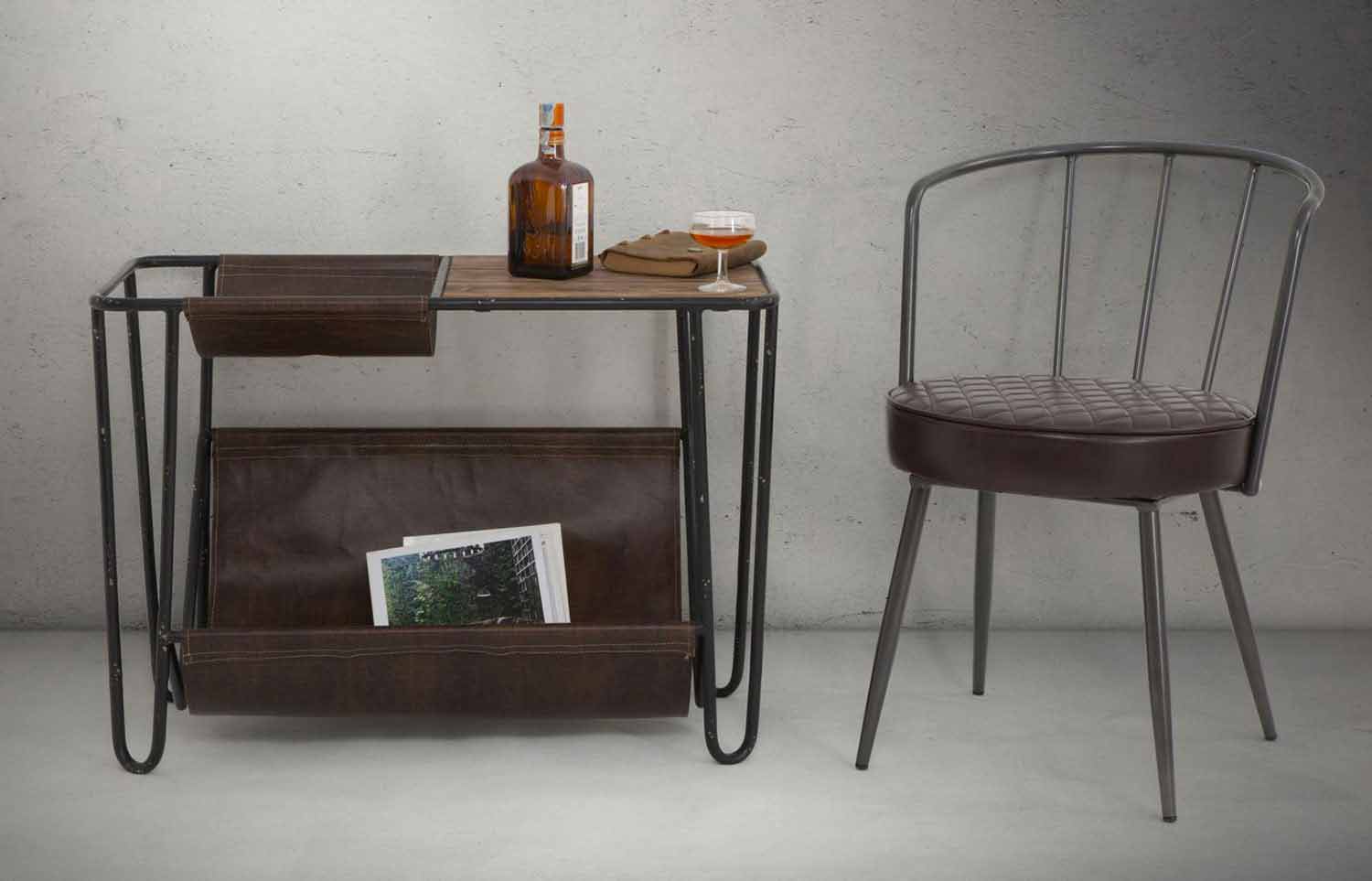 Kolltuk modern i dizajnit industrial në hekur dhe eko-lëkurë.