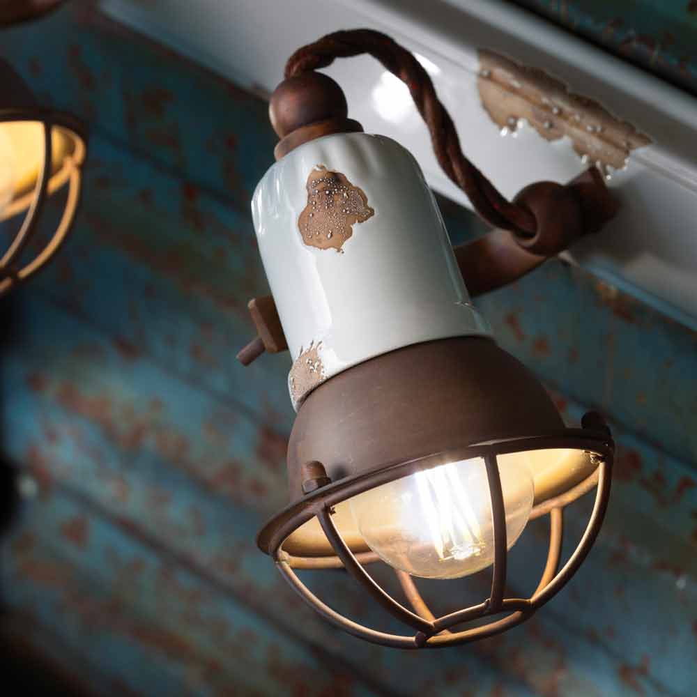 Kjo llambë e bukur është prej hekuri të vjetër dhe qeramikë me shkëlqim, e disponueshme në ngjyra të ndryshme.