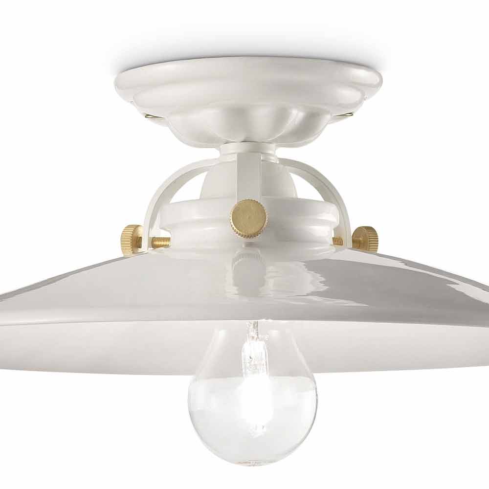 Dizajn llambë tavani me vida qeramike dhe ari Louise Ferroluce Louise është një dritë fantastike tavani, e punuar me dorë nga artizanë të aftë në Itali. Llambë prej qeramike, e disponueshme në dy përfundime të ndryshme: e zezë me shkëlqim ose e bardhë me shkëlqim. E veçanta e kësaj drite të bukur tavani përmbahet në formën dhe dizajnin e saj. E pajisur me një stil unik dhe origjinal, Louise sjell me vete një stil të rishikuar vintage-industrial, dhe është në gjendje të përshtatet me çdo mobilje, nga më të thjeshtat dhe minimalet, deri tek ato më klasiket, duke krijuar një kontrast delikat; e gjithë kjo është e mundur falë sipërfaqeve të saj të thjeshta, lineare dhe të pa zbukuruara. Ngjyrat e qarta dhe sipërfaqet me shkëlqim përcaktojnë profilin e kësaj drite fantastike tavani. Louise ka një dizajn aktual, duke ruajtur kujtesën e një stili të kaluar. Kompletuar me vida mbështetëse që janë bërë një detaj i çmuar falë përfundimit të tyre të artë, i cili nxjerr në pah praninë dhe funksionin e tyre. Sillni një prekje të dizajnit edhe në shtëpinë tuaj! Llamba e disponueshme në përfundime të ndryshme. Kontrolloni tabelën e ngjyrave dhe vendosni kodin e përfundimit që dëshironi në kutinë e duhur!