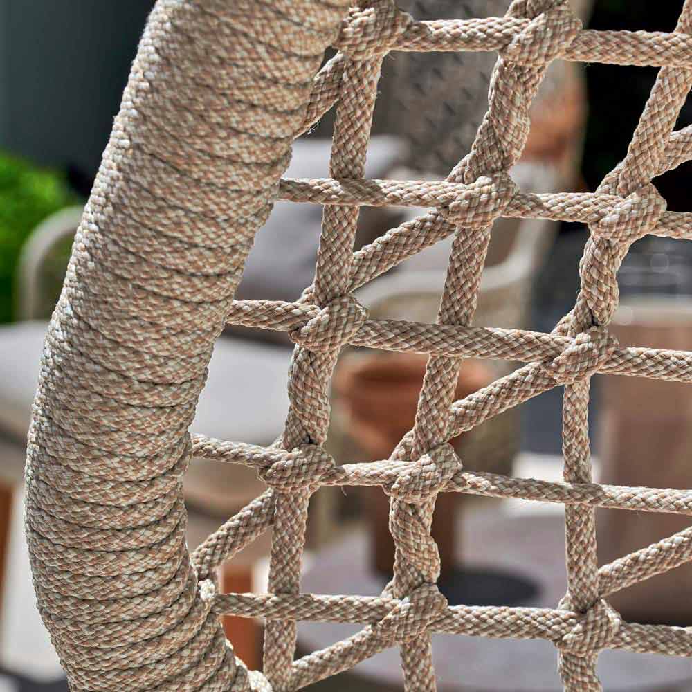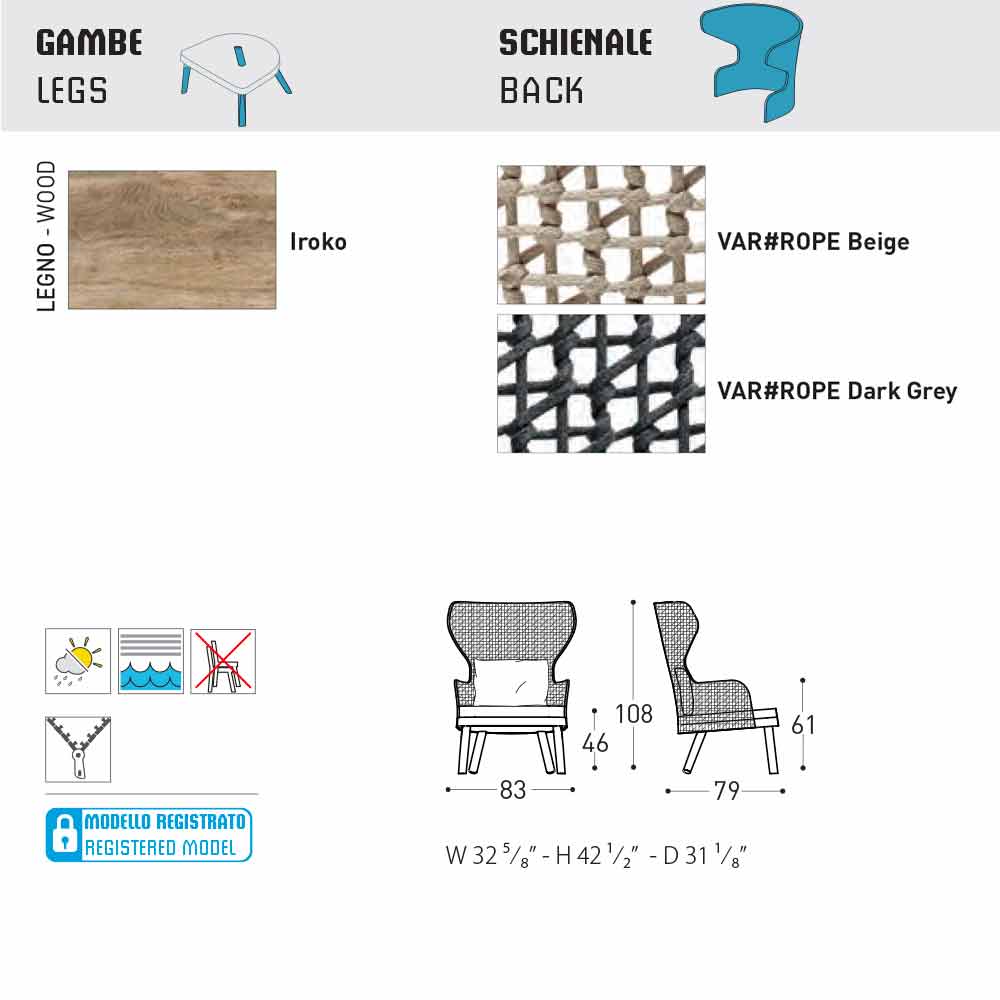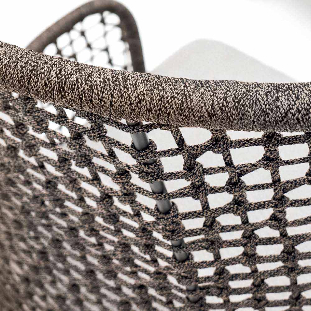 Emma është një kolltuk fantastik kopsht, me një strukturë në fije sintetike të endur me dorë, me një kornizë alumini të veshur me pluhur, në dispozicion në dy ngjyra: bezhë dhe gri të errët .