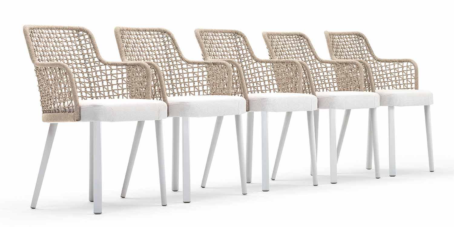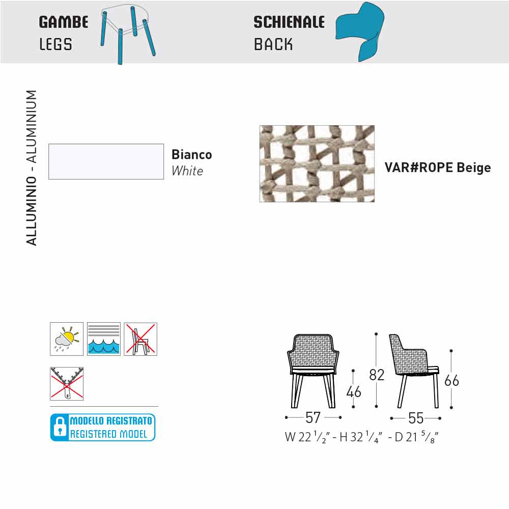 Emma është një kolltuk në natyrë që karakterizohet nga një strukturë e endur nga fibra sintetike e punuar me kornizë alumini të veshur me pluhur beige .
