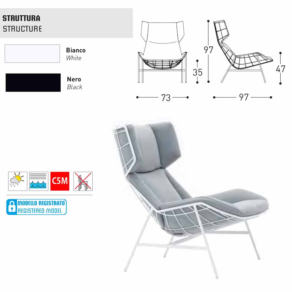 Summer Set është një kolltuk i mrekullueshëm për kopshtin bergere, i karakterizuar nga një strukturë mbështetëse në çelik të veshur me pluhur me një zgjedhje të ngjyrave të bardha ose të zeza ; jastëk dhe ulëse mbrapa të mbuluara në pëlhurë dhe të mbushur me gome Dryfeel.