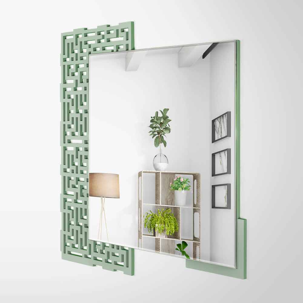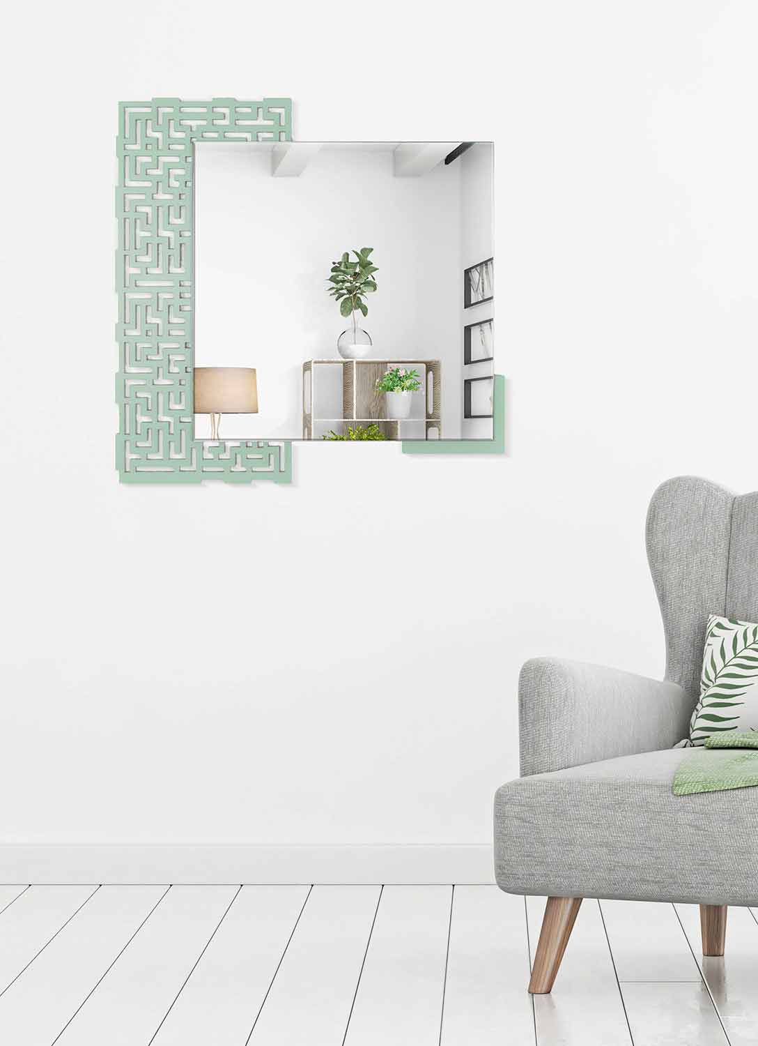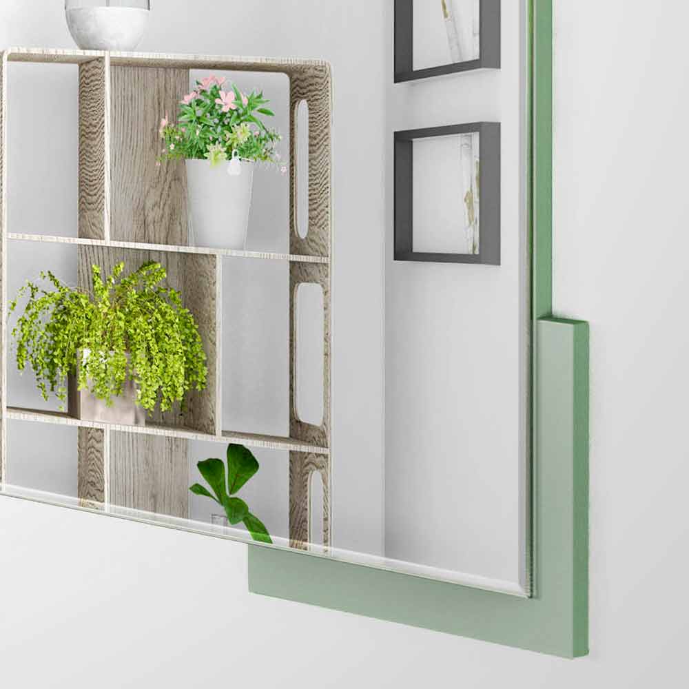 Pasqyrë muri moderne, dizajn gjeometrik katror, në dru jeshil dhe prodhim Italie.