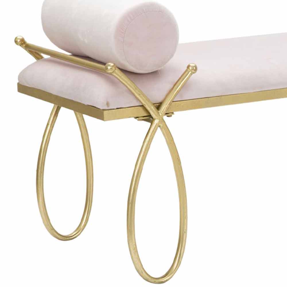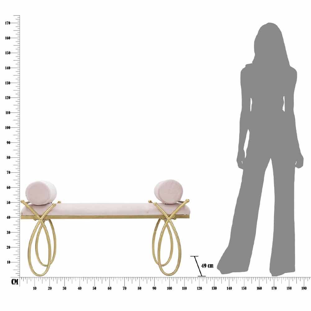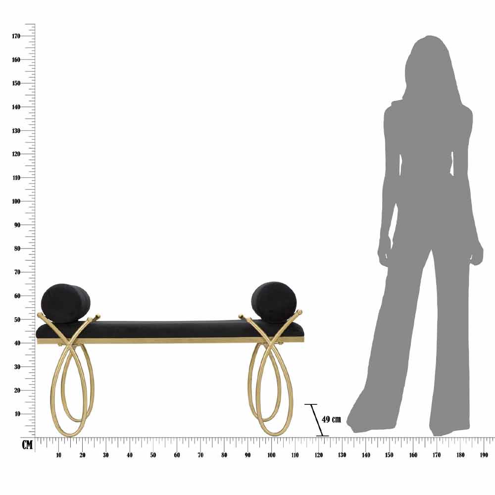 Stol drejtkëndor 112,5X49X53 cm të dizajnit modern në hekur, MDF dhe pëlhurë.