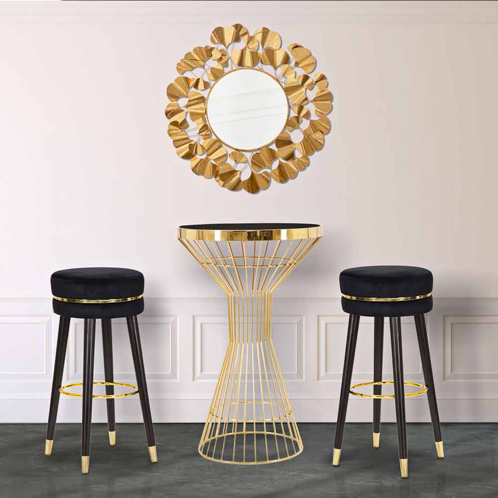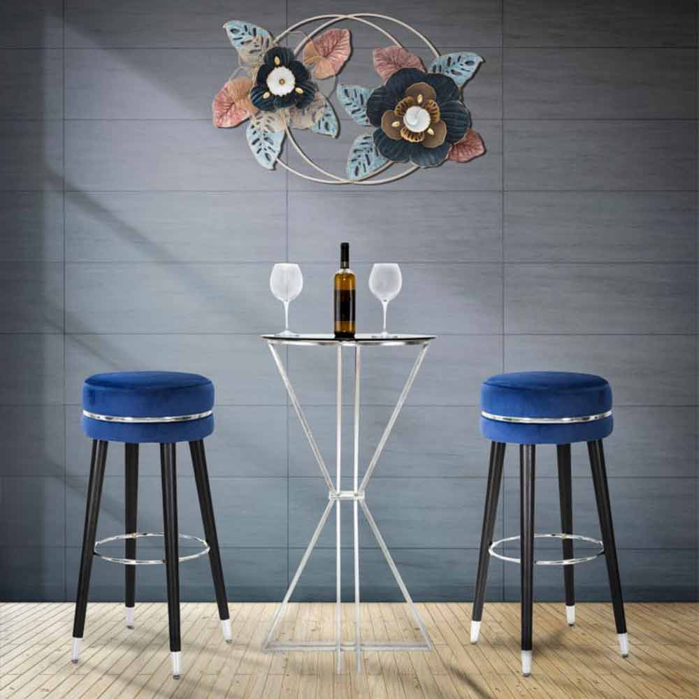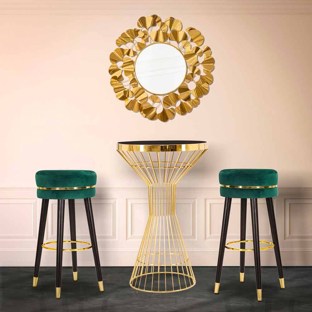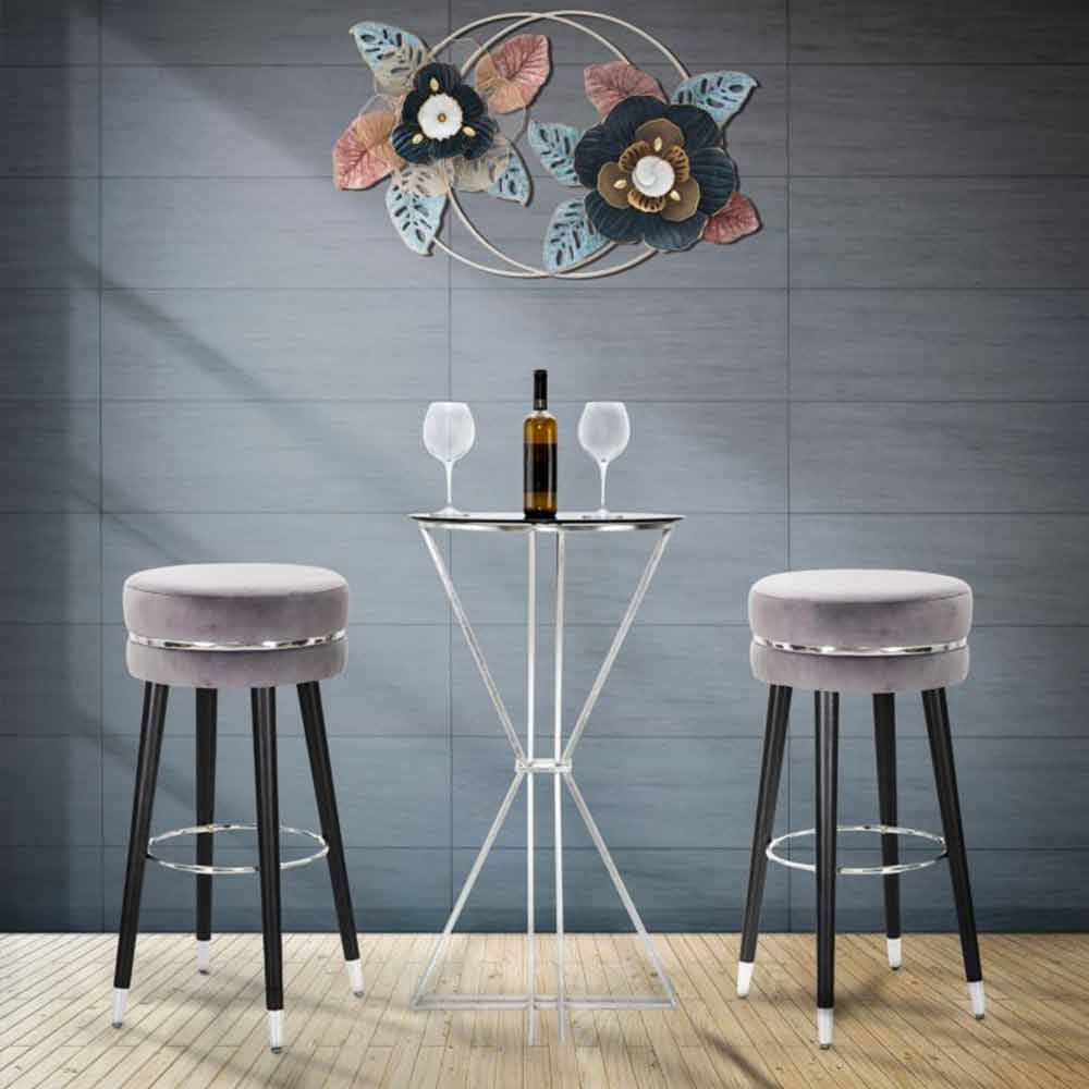 Stol i stilit modern me stol të rrumbullakët Ø 35 cm në dru dhe pëlhurë.
