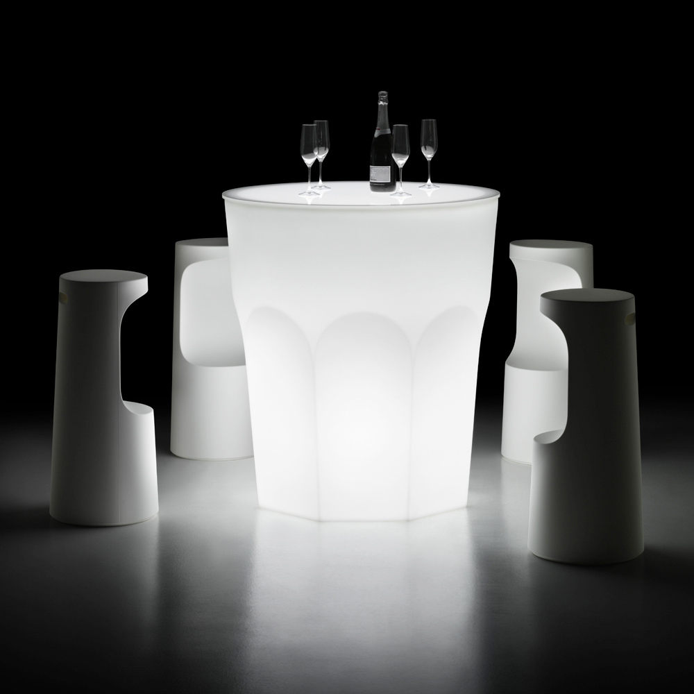 Dizenjoni tryezën e dritës në natyrë në polietileni me dritë LED Prodhuar në Itali.