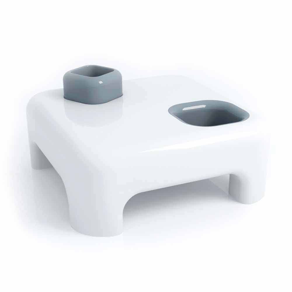 Një "kub" i kthyeshëm është vendosur në një ndarje të zbrazur dhe duket se është nxjerrë nga vrima në skajin tjetër të raftit. Këta tre elementë ofrojnë funksione të ndryshme shtesë: ngritës, vazo ose enë për "kubin". Xhepi më i zbrazët për gjurmën e gdhendur, ndërsa vrima mund të bëhet një vazo ose ndarje ruajtëse (shishe, revista, bimë ...).