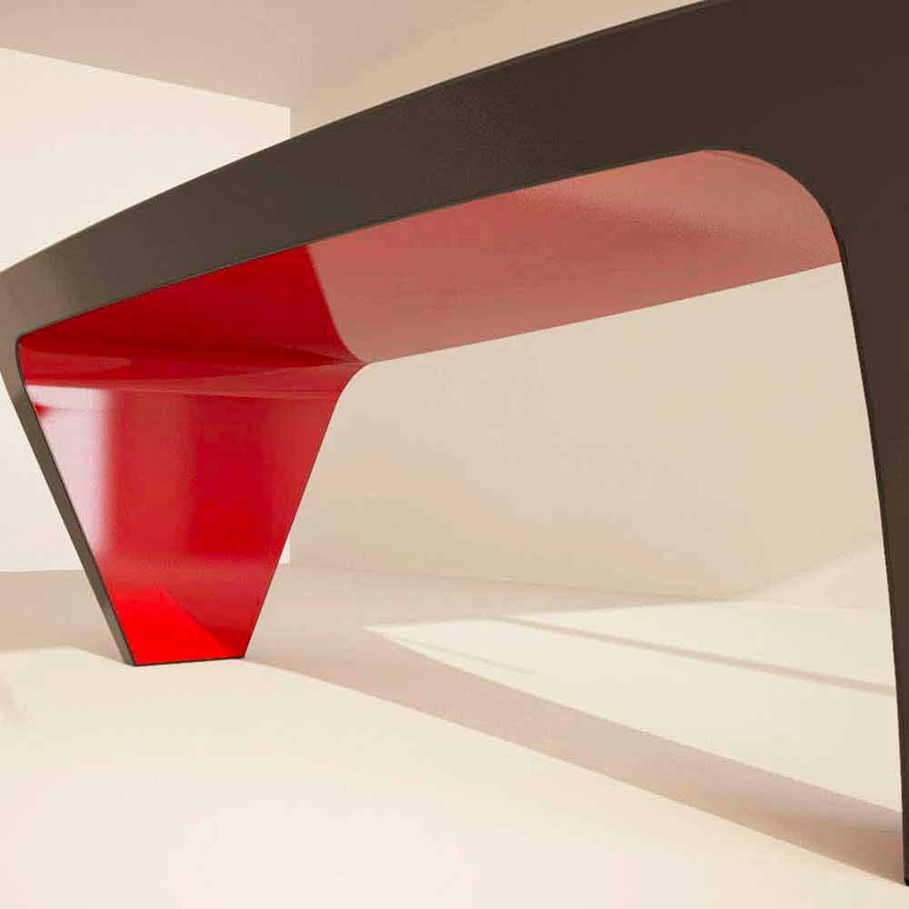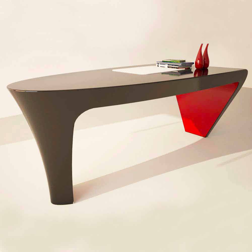 Eleganca dhe Dizajn. Materiali: Sipërfaqja e ngurtë; Një tavolinë dizajni me linja minimale dhe elegante, me forma moderne dhe të fundit. Në strukturën e saj kujton thembra e këpucëve të një gruaje, një tavolinë zyre praktike dhe funksionale, pavarësisht imazhit dhe ndikimit të fortë të dizajnit. Dizajni i tavolinave dhe të gjithë elementëve të tjerë që përbëjnë zyrën ekzekutive është gjithnjë e më modern dhe inovativ, i aftë për të befasuar në çdo rrethanë. E jashtme: Finiturë me llak me shkëlqim Pjesa e brendshme: llak mat E disponueshme në variacione të ndryshme ngjyrash.