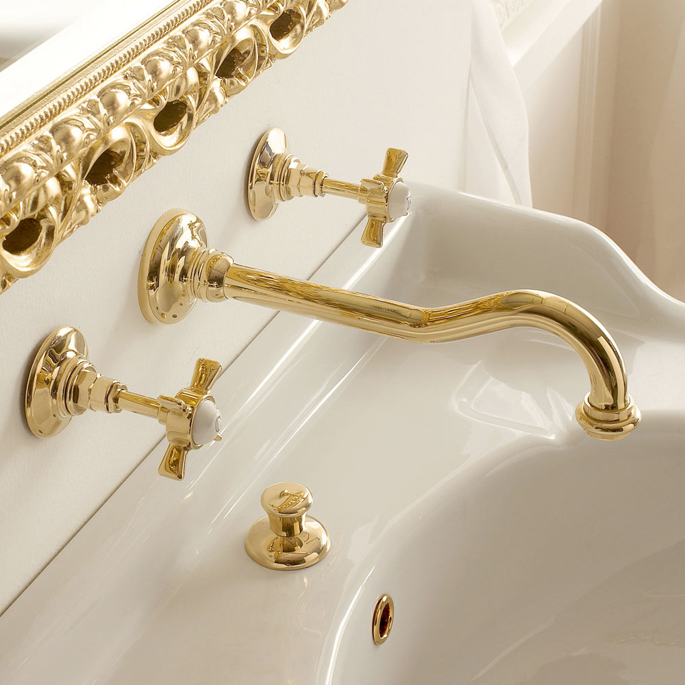 Rubineti i montuar në mur për lavaman ose lavaman i bërë në tunxh Katerina, prodhimi italian.