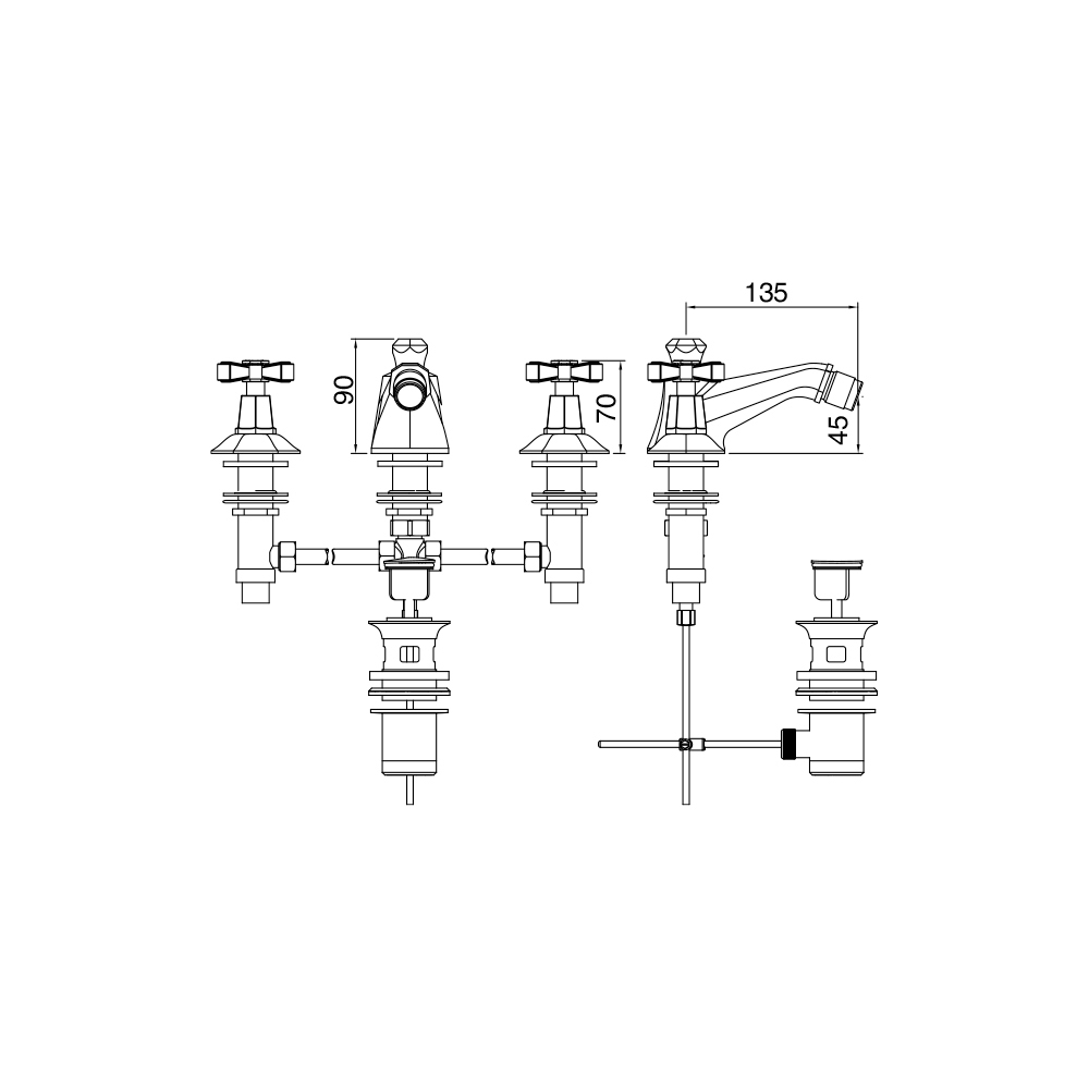 rubinet i vogël dhe i sofistikuar i bidetit me 3 vrima me kullues, i bërë prej bronzi.