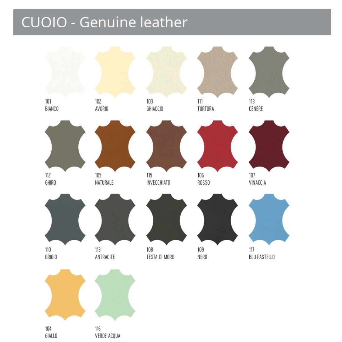 me kokrra të plota: Lëkura me grurë të plotë të pastruar nga perimet është një material i trajtuar në mënyrë natyrale. Do lëkurë ka karakteristikat e veta, shenja tipike të plakjes siç janë venat dhe mbrojtja nga hije. Dallimet në grurë, cilësi dhe ngjyra mund të theksohen sipas llojit të lëkurës. Ky material është i ndjeshëm ndaj dritës, nxehtësisë dhe lagështisë së drejtpërdrejtë.