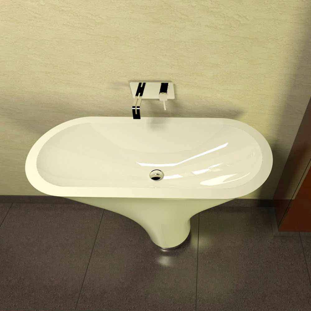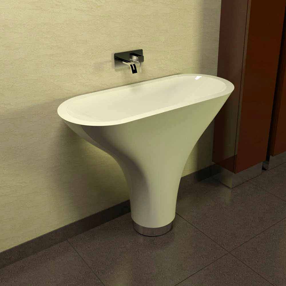 Lavaman i projektuar. Materiali: Sipërfaqja e ngurtë; Një lavaman elegant me piedestal me dimensione bujare që nxjerr një personalitet të fortë dizajni. Para së gjithash, një mobilje dizajni me një stil klasik në botën e mobiljeve të banjës, por në të njëjtën kohë inovative për përdorimin e materialeve rrëshirë, e kombinuar me një pllakë çeliku për të përfunduar kolonën e lavamanit, duke e bërë atë një dizajn. Objekt. thjesht unike. Fund me llak me shkëlqim. E disponueshme ne ngjyra te ndryshme.