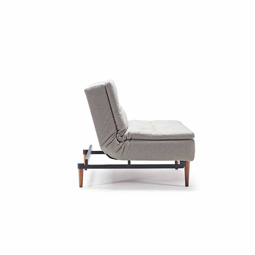 Dizajni skandinav dhe krevati i stilit nordik, i rregullueshëm në 3 pozicione Dublexo by Innovation , këmbë në dru të errët, strukturë prej çeliku të zi mat. Dublexo paraqet një dizajn modern dhe novator, por në të njëjtën kohë klasik. Mbështetësja e shpinës ndahet në dy pjesë të pavarura që mund të rregullohen në 3 pozicione: divan, relaks dhe shtrat. Në kombinim me kolltukun ju merrni disa mundësi, p.sh. chaiselounge.