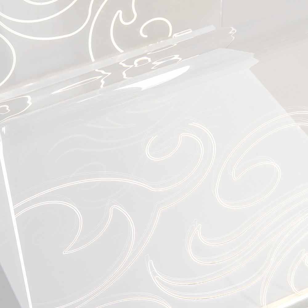 Tavolinë kafeje Plexiglass me dritë të udhëhequr të bërë në Itali, Chiusi Chiusi është një tavolinë fantastike kafeje italiane e bërë nga kristal i pastër akrilik PMMA i cili është i integruar me një dritë natyrale LED të bardhë me një ndërprerës këmbësh.