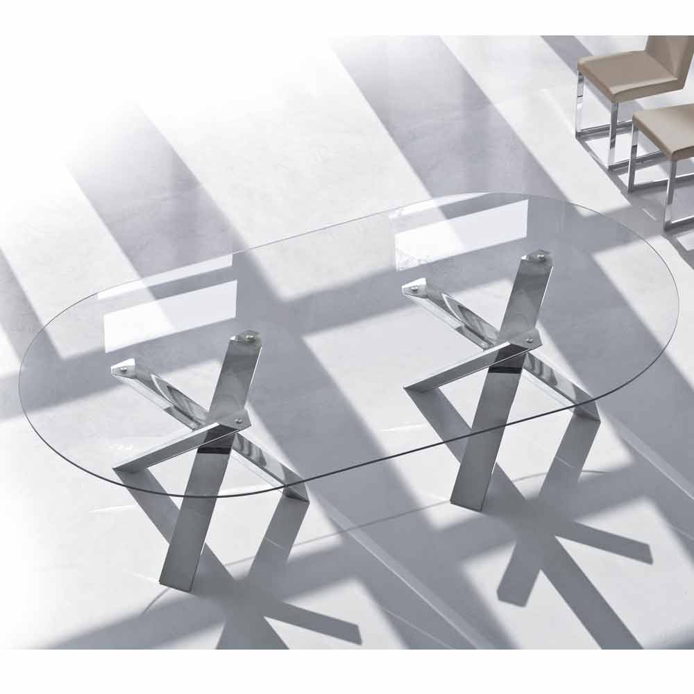 Dizajni tryezë ovale në kristal 280x120cm bërë në Itali, Pemë