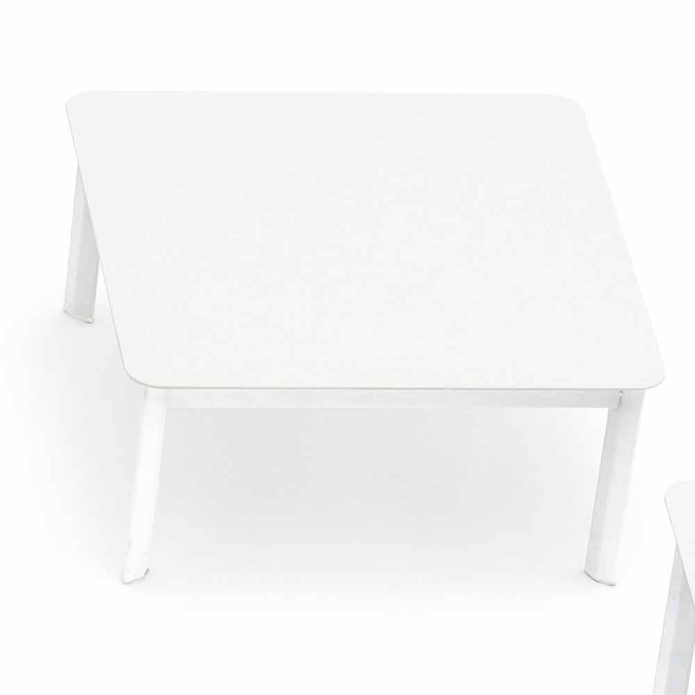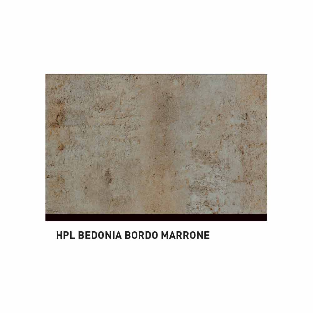 Sistemi është një tryezë e mrekullueshme kopshtesh me një strukturë të bardhë të veshur me pluhur alumini; me majë në HPL (sp. 1.2) në përfundim: kufiri i zi mëndafshi gri, mëndafshi i bardhë, kufiri i zi i bardhë, kufiri i zi anthracit, kufiri i bardhë i bardhë, kufiri me kafe çimentoje, kufiri me kafe bedonia, kufiri kafe corten ; ose me një majë qeramike me shkurre të lartë (sp. 1.2) në fund: gëlqere të bardhë dhe porfiri gri .
