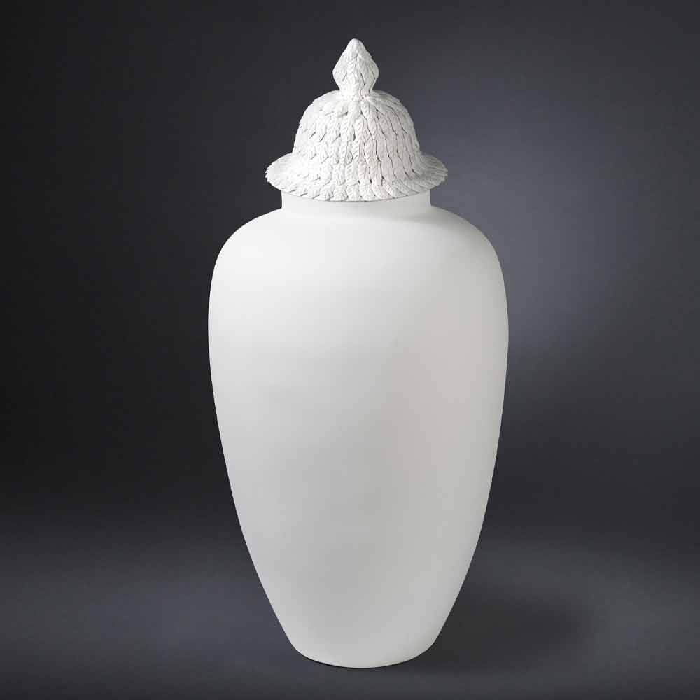 Vazo e gjate dekorative ne punim te bardhe qeramike ne Itali, cilesore.
