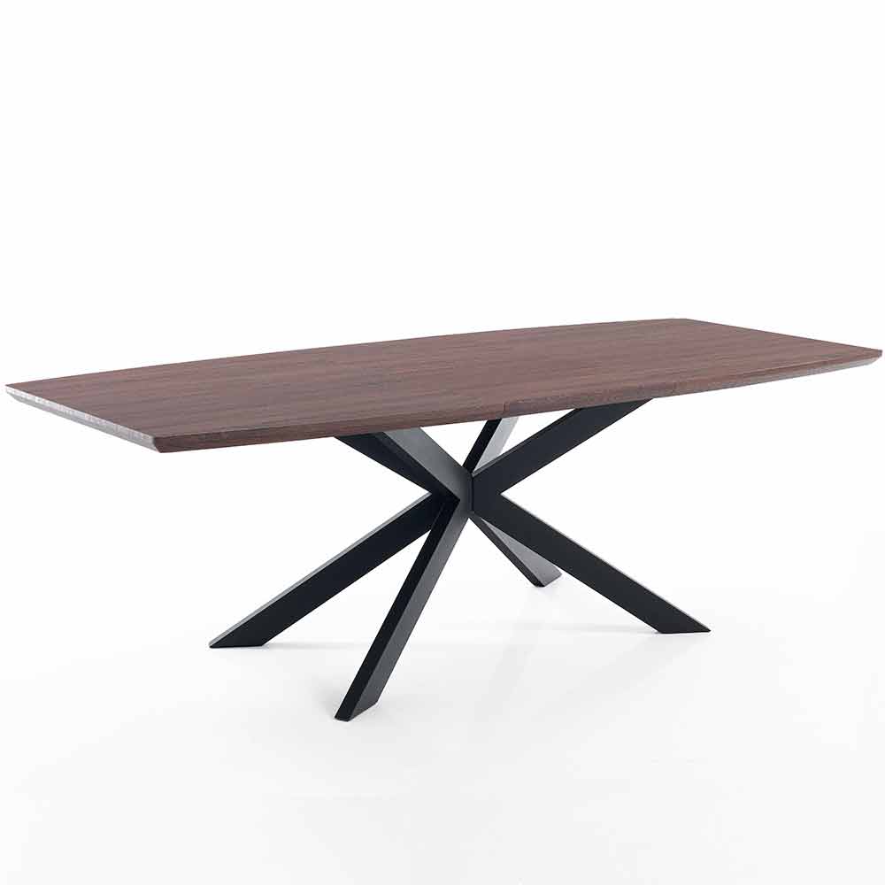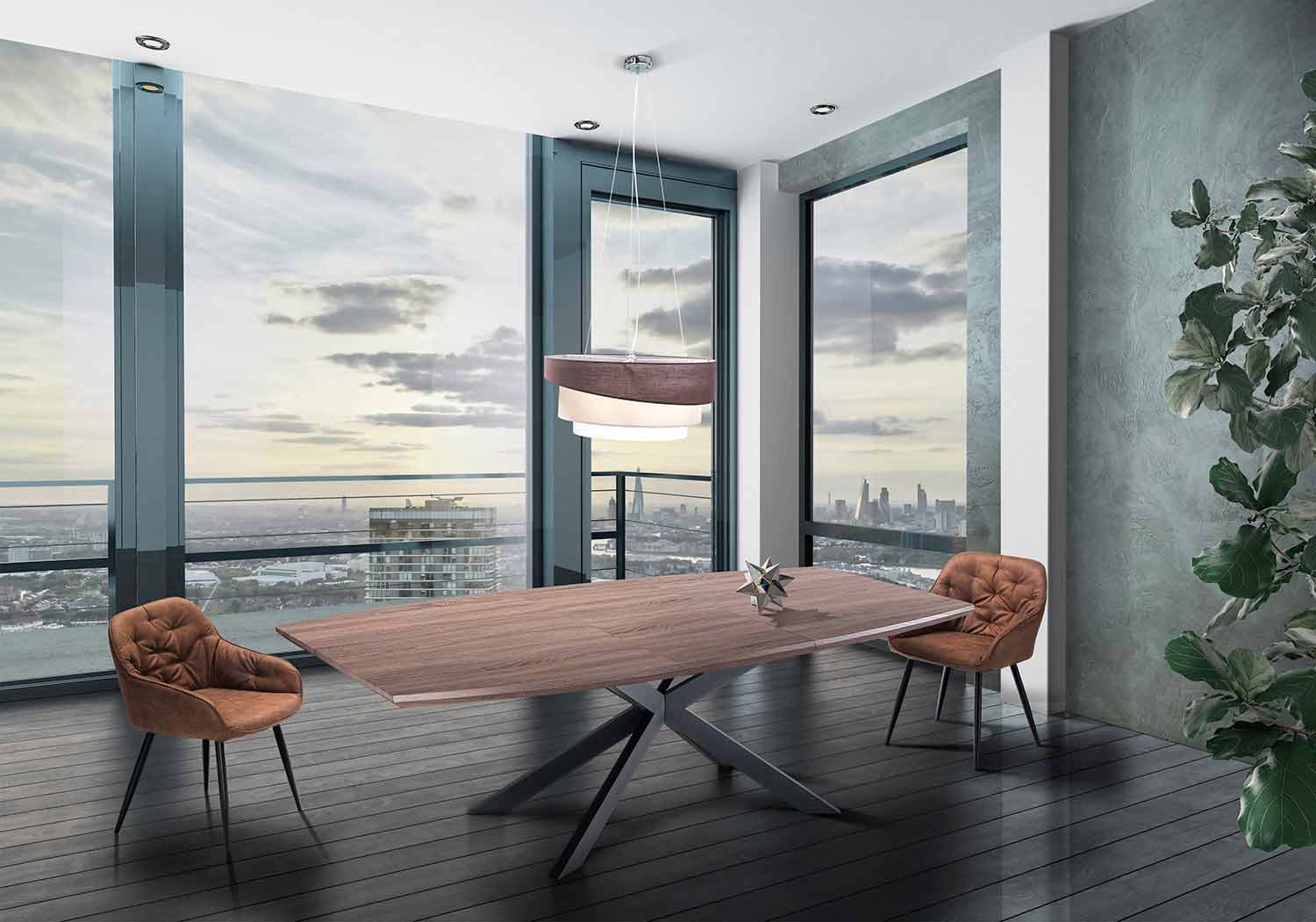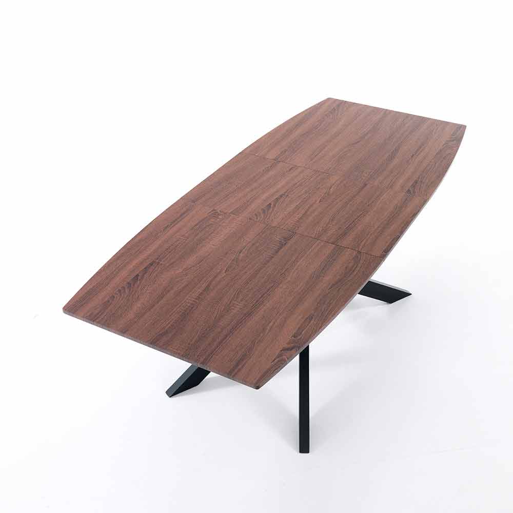 Torquato është një tryezë e shkëlqyer e ngrënies e zgjatur e realizuar me një top Mdf (trashësi 4cm) e mbuluar me letër arre të errët prej letre 3D dhe këmbë metalike me lustër të zezë.