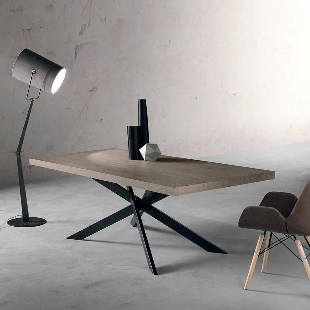 Prodhuar ekskluzivisht në Itali me materiale nga marka made in Italy. Pjesa e sipërme e saj është me rimeso lisi me nyje e përftuar me procesin e palosjes, me trashësi 60 mm. Struktura është prej metali me finiturë antracit me mikro reliev me tuba të kryqëzuar dhe këmbë të rregullueshme.