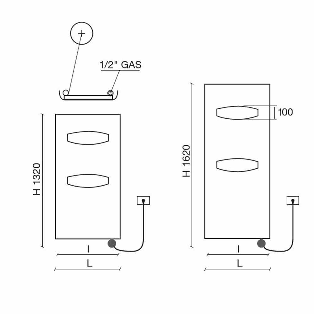 Termostati 110 mm duhet të shtohet në lartësi. Kuti termostatike e bardhë si standard për radiatorët e bardhë; krom për radiatorët me ngjyra dhe përfundimet e çelikut. Furnizim me energji elektrike me një fazë 230 volt.
