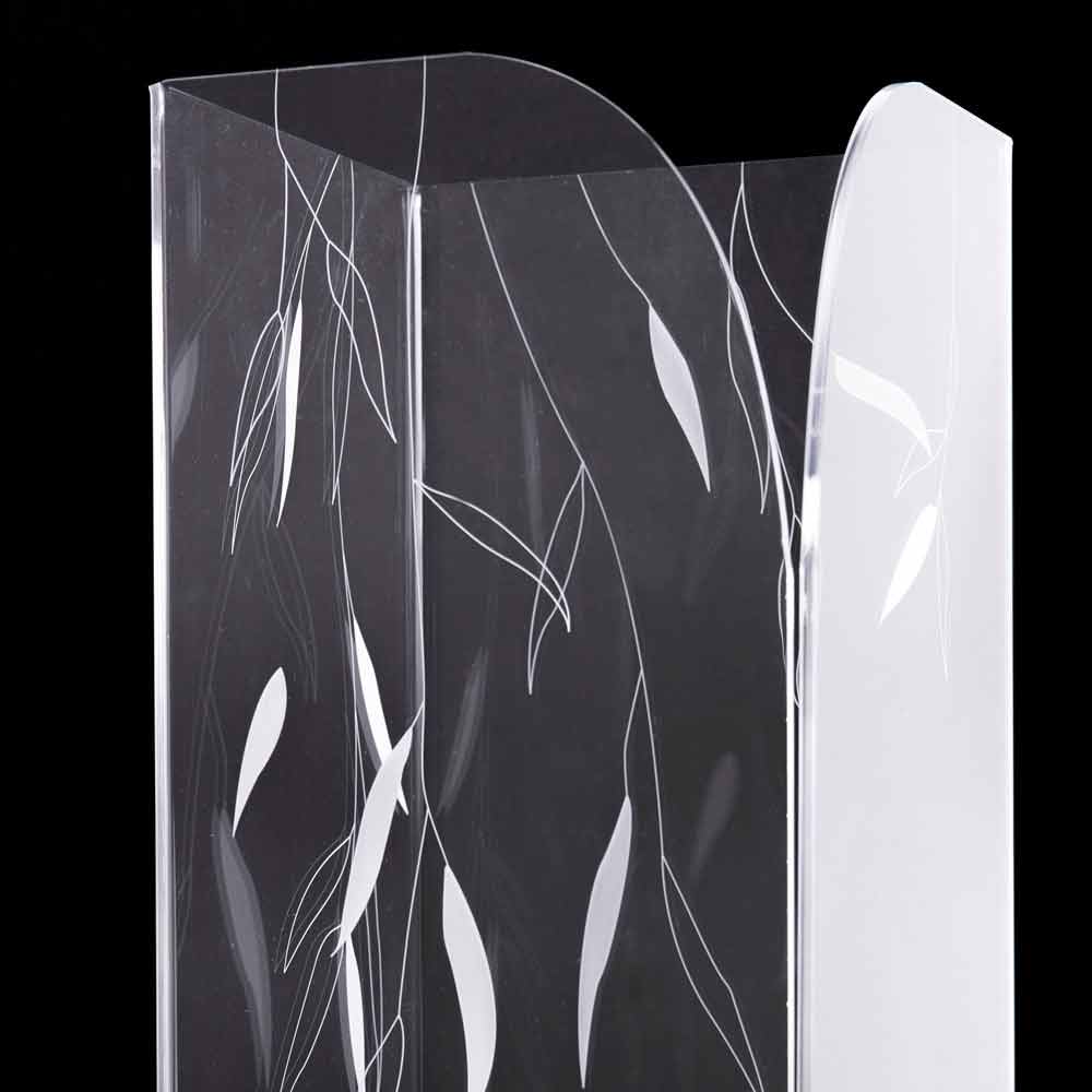 Qëndrim ombrellë në plastikë transparente me gjethe dekorative të gdhendura në lazer, prodhuar në modelin e Italisë.