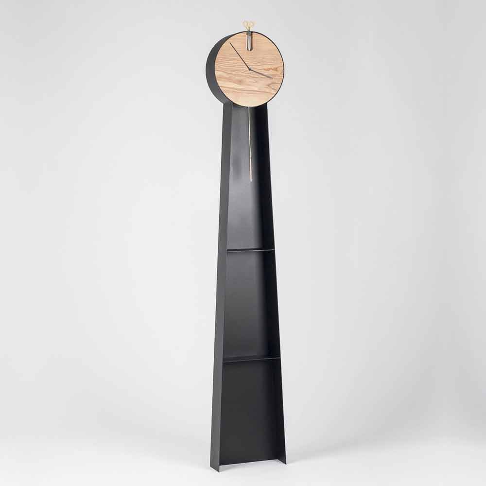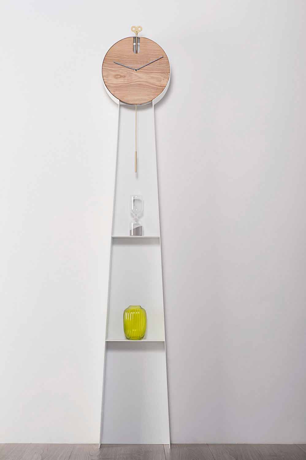Kjo orë e lavjerrësit të dyshemesë është një objekt inovativ që ndërthur një dizajn inovativ dhe jashtëzakonisht modern me një prekje më klasike të dhënë nga çelësi dredha-dredha prej bronzi tipike për orët e vjetra të lavjerrësit. Struktura e saj është e punuar plotësisht në Itali në çelik të pikturuar RAL dhe ka dy rafte praktike ideale për vendosjen e objekteve të arredimit që mund t'i japin produktit edhe më shumë personalitet dhe karakter. Ora është bërë në vend të drurit të ngurtë të hirit i cili së bashku me çelikun jep një estetikë të rafinuar dhe moderne.