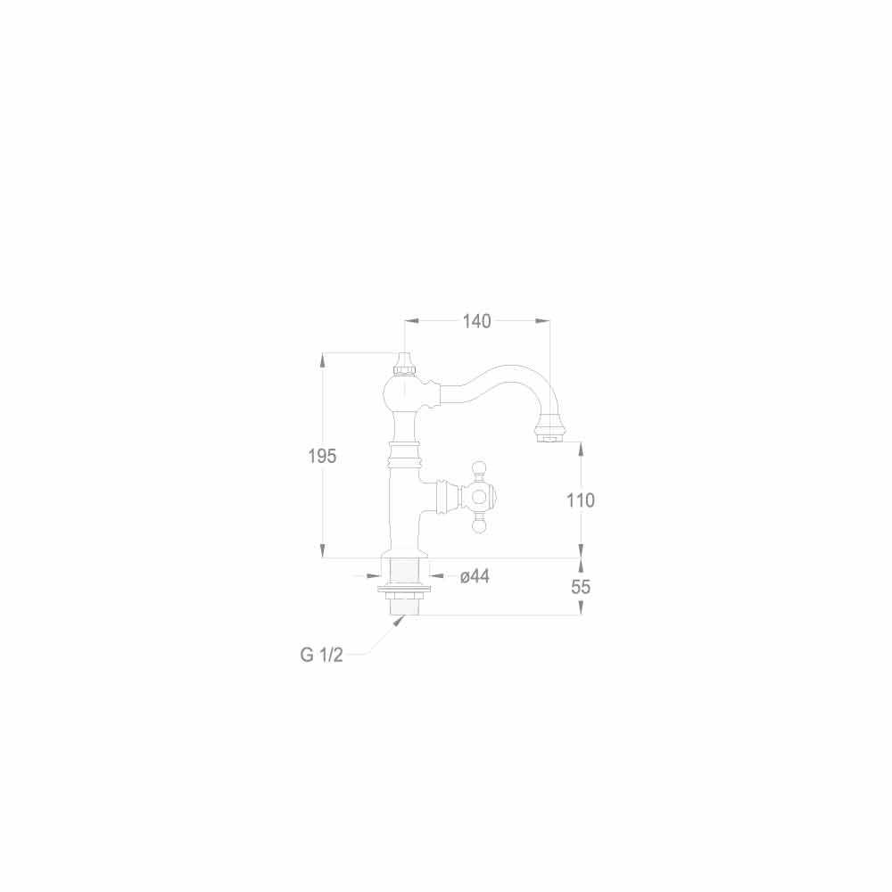 Çezmë në pellgun e countertopit me ujë të vetëm në bronz me fund kromi. Prodhuar tërësisht në Itali me materiale me cilësi të lartë në përputhje me standardet evropiane. Ky mikser mund të instalohet në pjesën e sipërme, i pajisur me një aerator dhe kokë qeramike 180 °; rekomandohet për sistemin e tij të Kursimit të Energjisë për kursimin e ujit prej 6L / min dhe grykën e tij të kthyeshme.