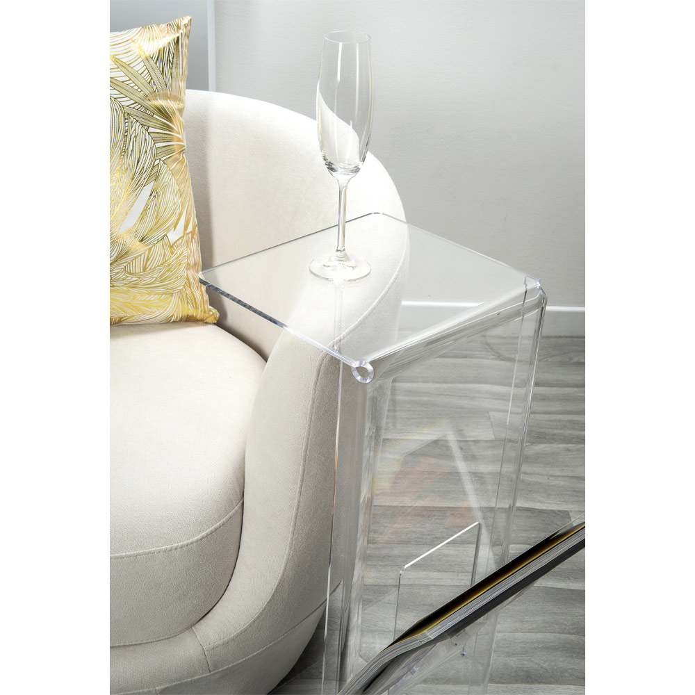 Tabela e vogël e dhomës së ndenjes në PMMA: Quero Vas Tabela e vogël QUERO VAS karakterizohet nga një dizajn modern dhe elegant, perfekt për tu përshtatur në dhomën tuaj të jetesës. Madeshtë bërë me PMMA nga polimere të virgjëra. Karakteristikat fizike të pleksiglas (termoizoluese, rezistente ndaj goditjes, jo deformuese, e pandryshueshme) e bëjnë tryezën e përshtatshme si për hapësirat e brendshme ashtu edhe ato të jashtme. Shkëlqimi i saj mbetet i pandryshuar dhe i pandryshuar me kalimin e kohës. Plexiglasi PMMA i përdorur nga polimerët e virgjër është jotoksik, hipoallergjik, pa erë dhe antibakterial. 100% e riciklueshme.