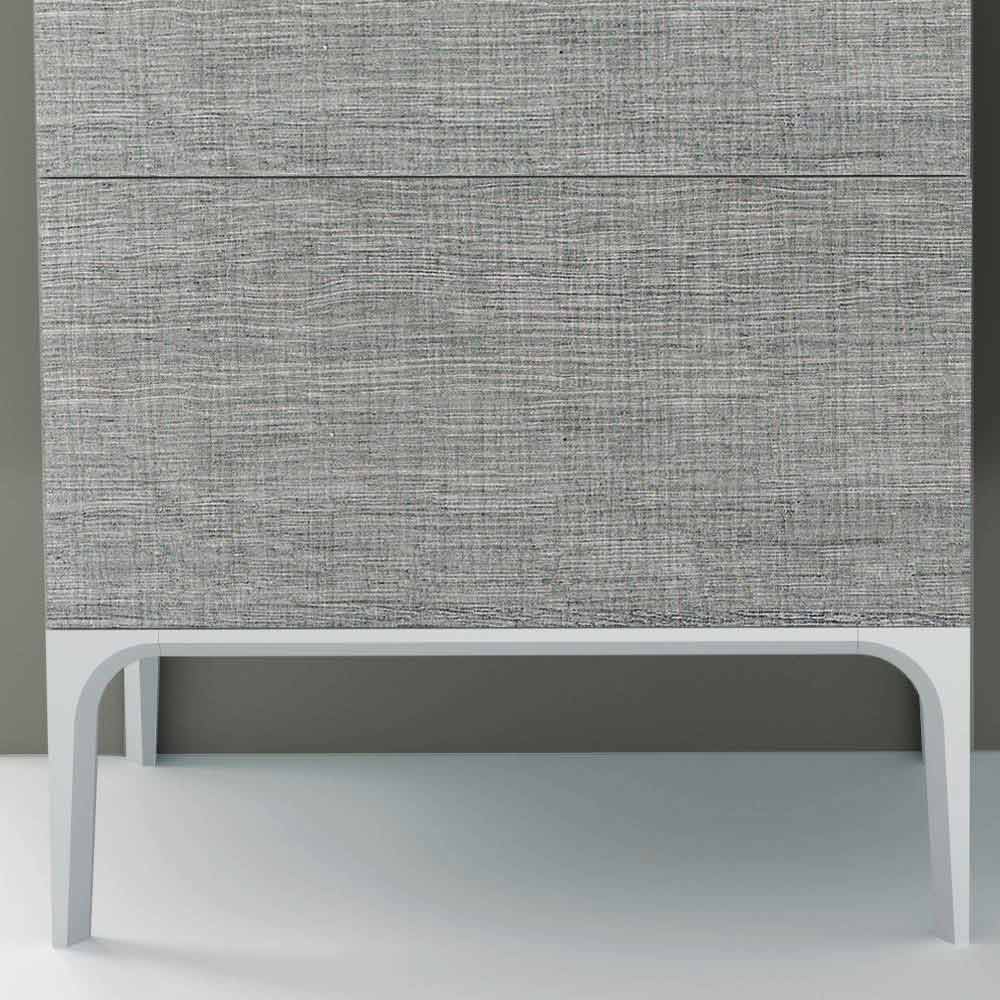 Njësi elegante lavaman me 2 sirtarë me linja të forta dhe harmonike në eko-dru me këmbë në dru të ngurtë gri perla. Pjesë e sipërme qeramike e integruar. Në dispozicion në përfundime të ndryshme. Dollapi i banjës Ambra shpreh elegancë dhe kalibër midis modernitetit dhe traditës me arkitekturë dhe këmbë të ngrohta, të forta dhe harmonike me sipërfaqe shumëfaqëshe në dru të fortë.
