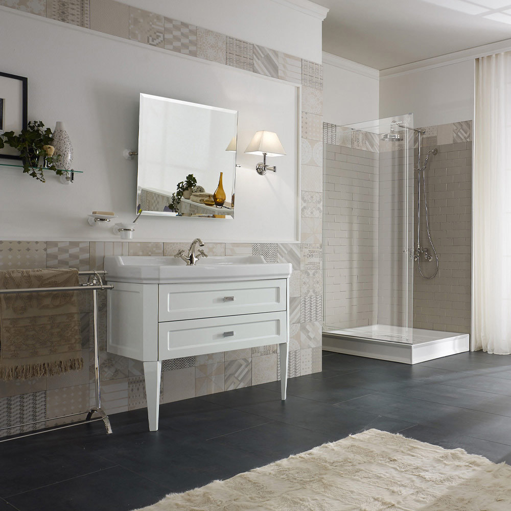 Dollap banjo Biancospino me dy sirtarë dhe lavaman qeramik Prodhuar në Itali